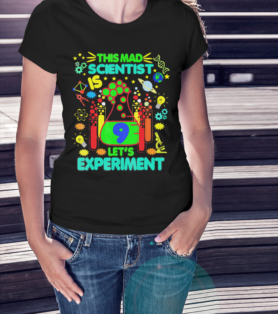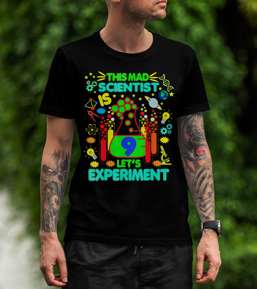 This Mad Scientist Is 9 Let's Experiment Birthday Age Science T-Shirt