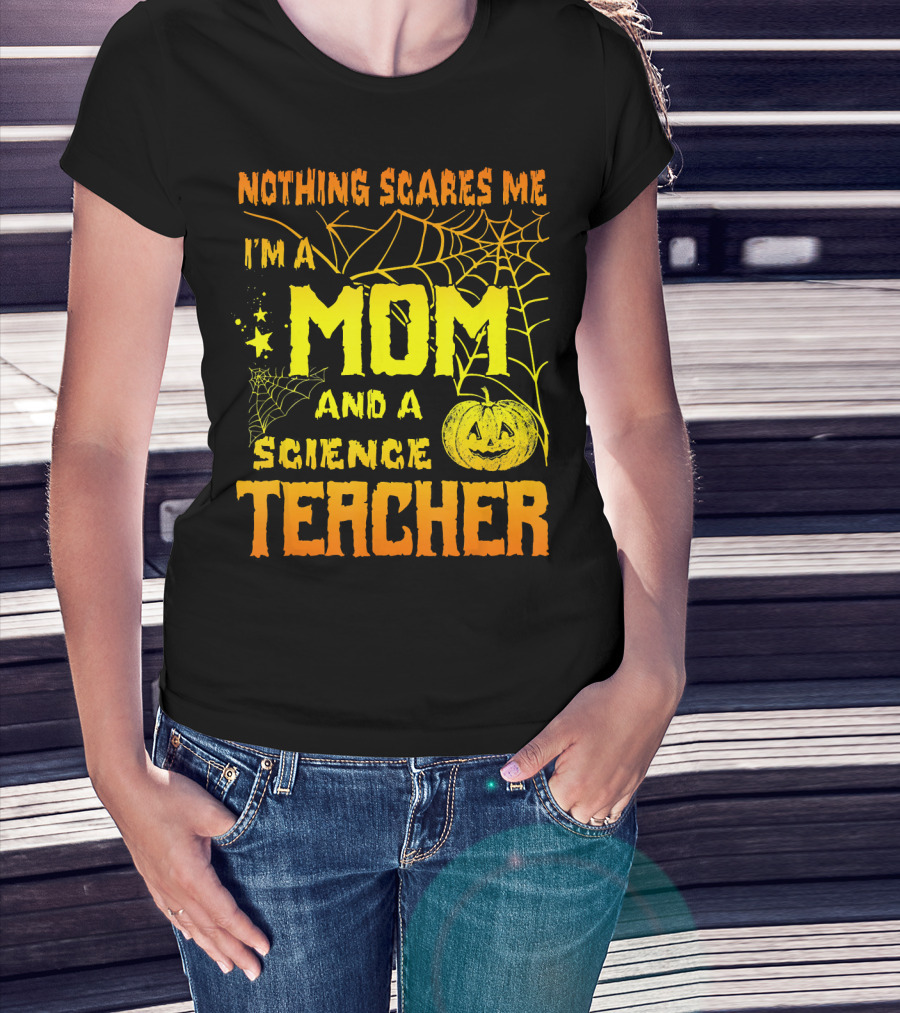 Nothing Scares Me I'm A Mom And A Science Teacher With Halloween Spiderwebs And Pumpkin T-Shirt