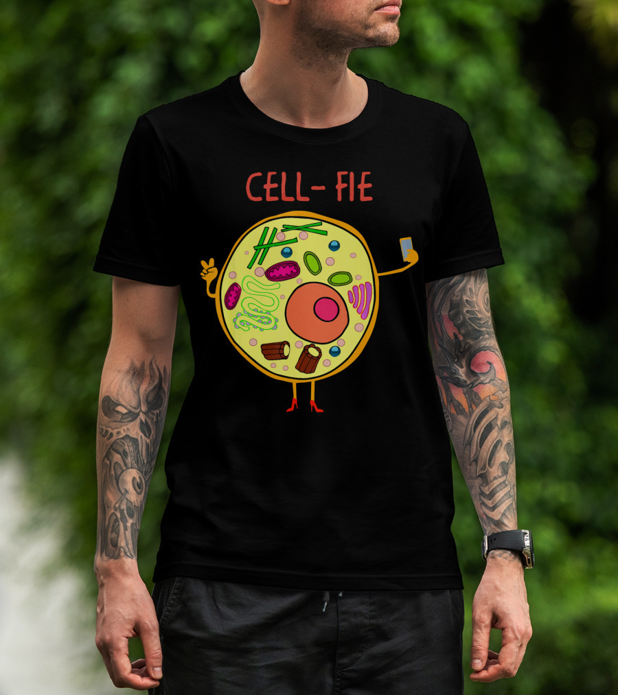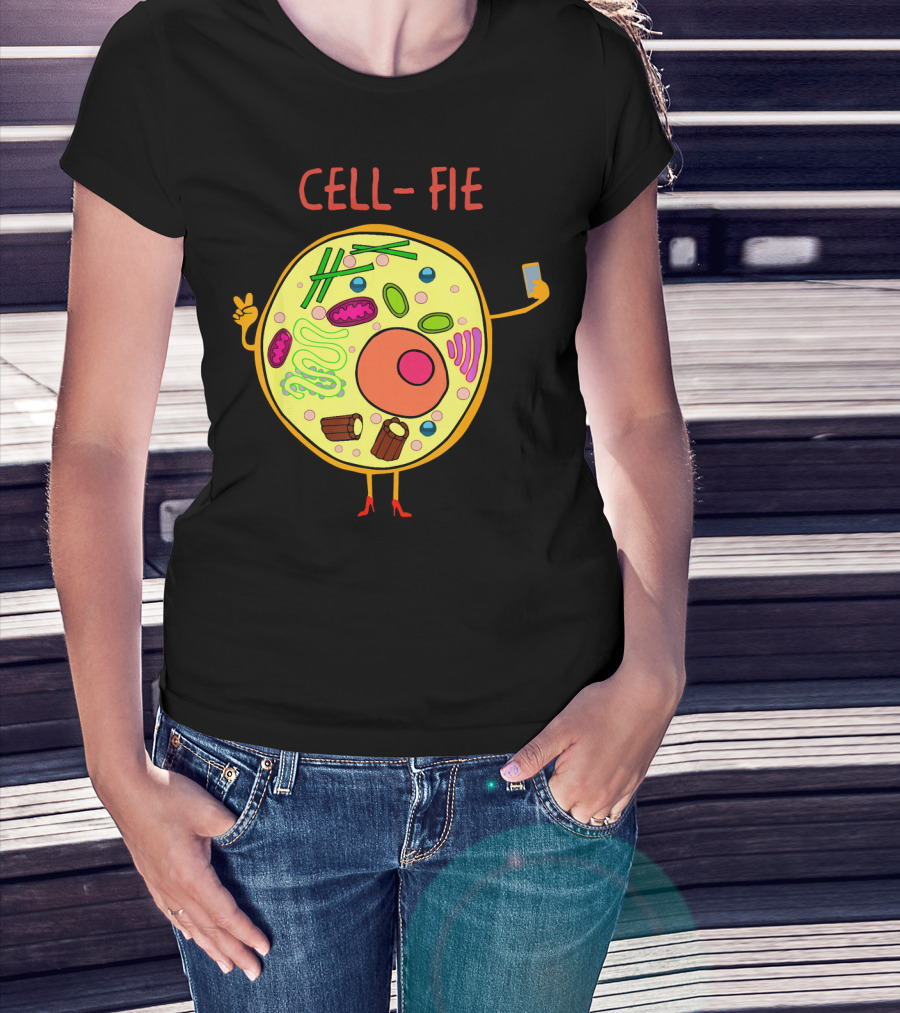 Cell-Fie Funny Science Tee Featuring Cartoon Cell Taking Selfie T-Shirt