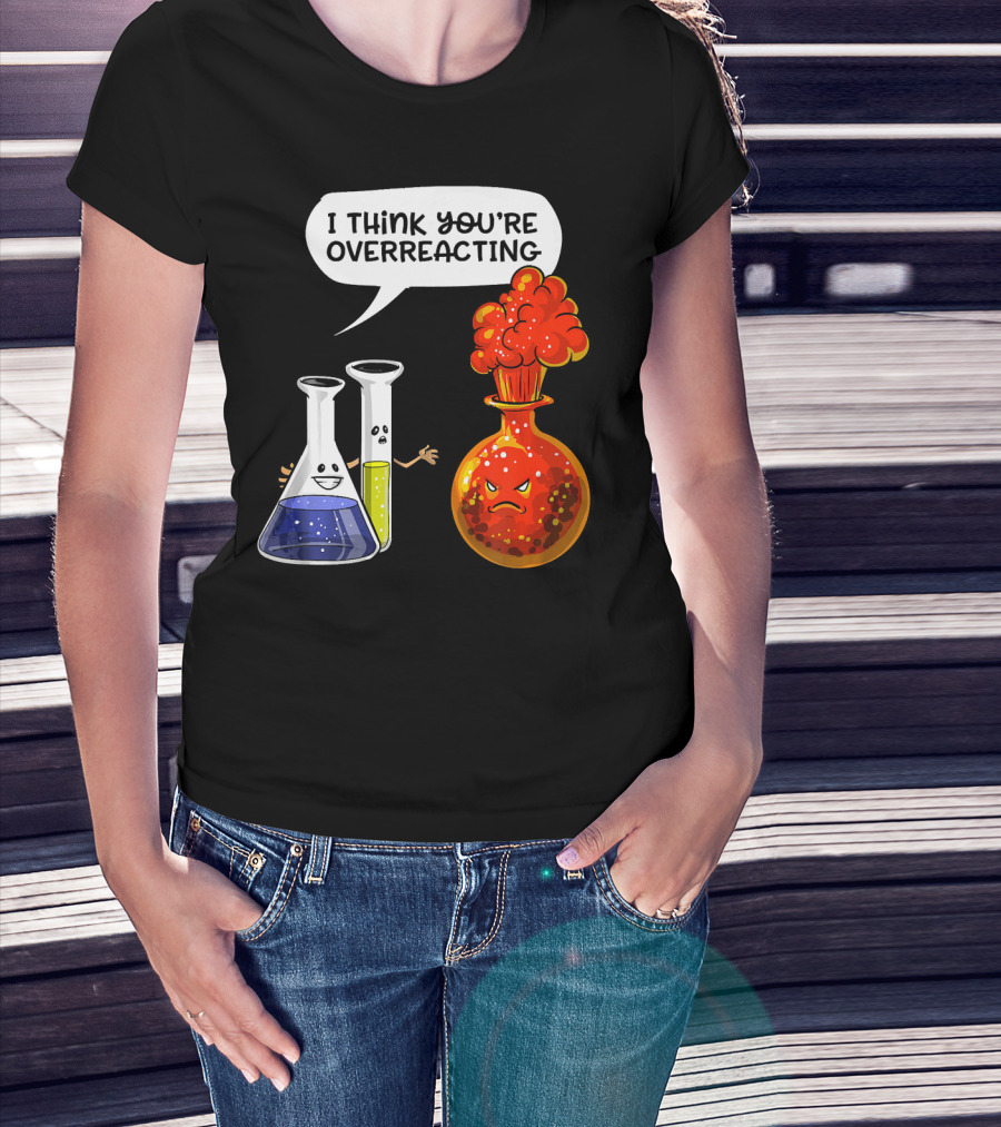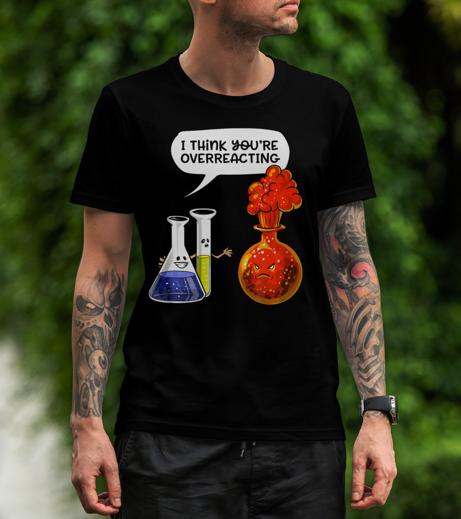 I Think You're Overreacting Funny Chemistry Science Beaker And Flask Explosion T-Shirt