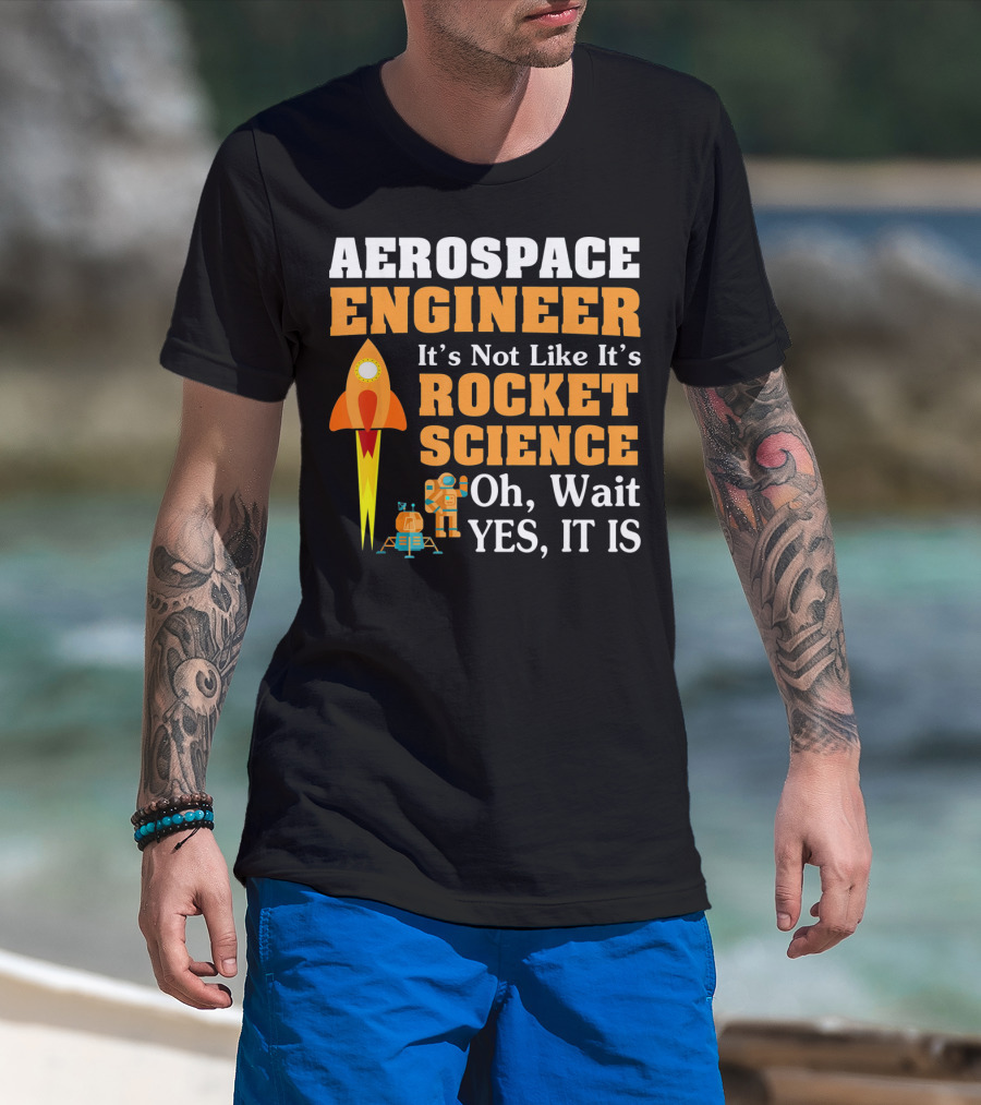 The Aerospace Engineer It's Not Like It's Rocket Science Oh Wait Yes It Is T-shirt is designed for everyday wear and a consistent fit. Fabric is pre-shrunk ring-spun cotton with durable stitching. See the size chart below for exact measurements.