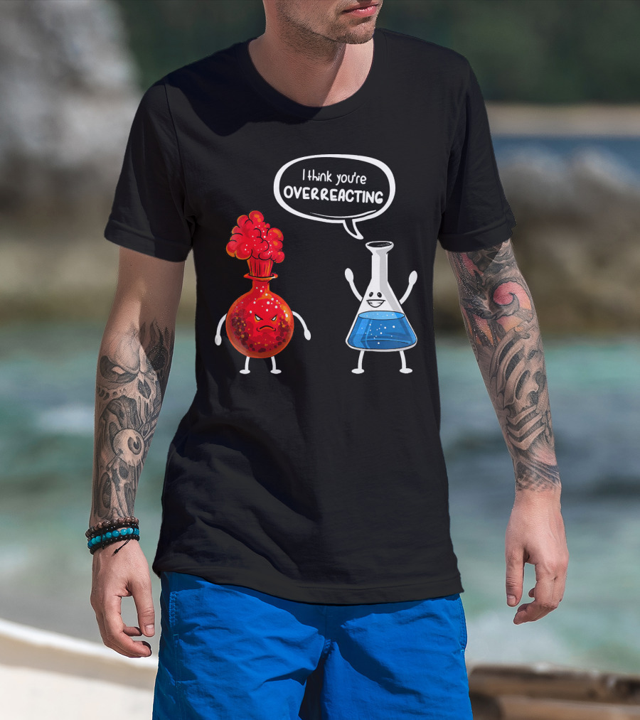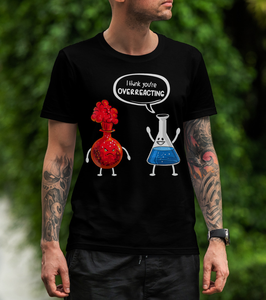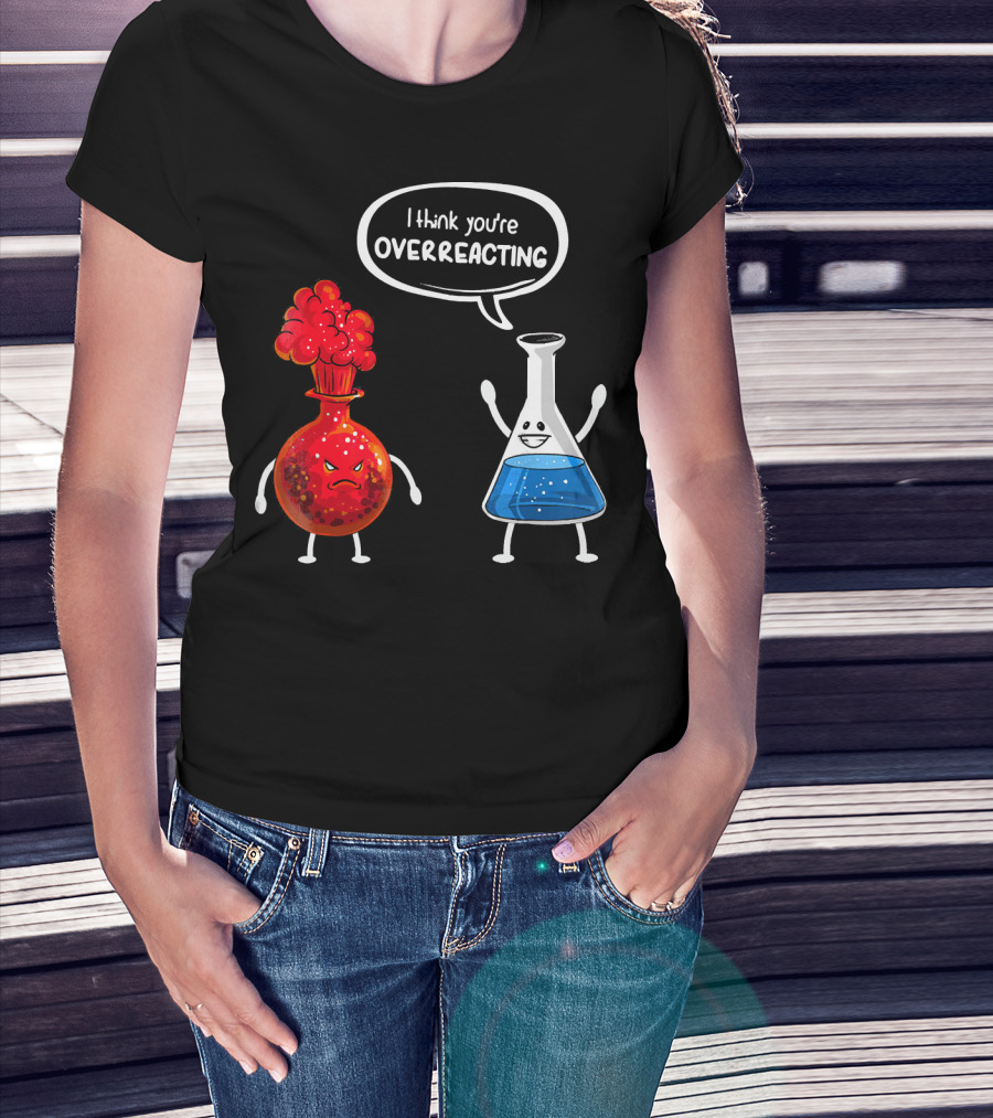 I Think You're Overreacting Funny Chemistry Beaker And Angry Flask T-Shirt