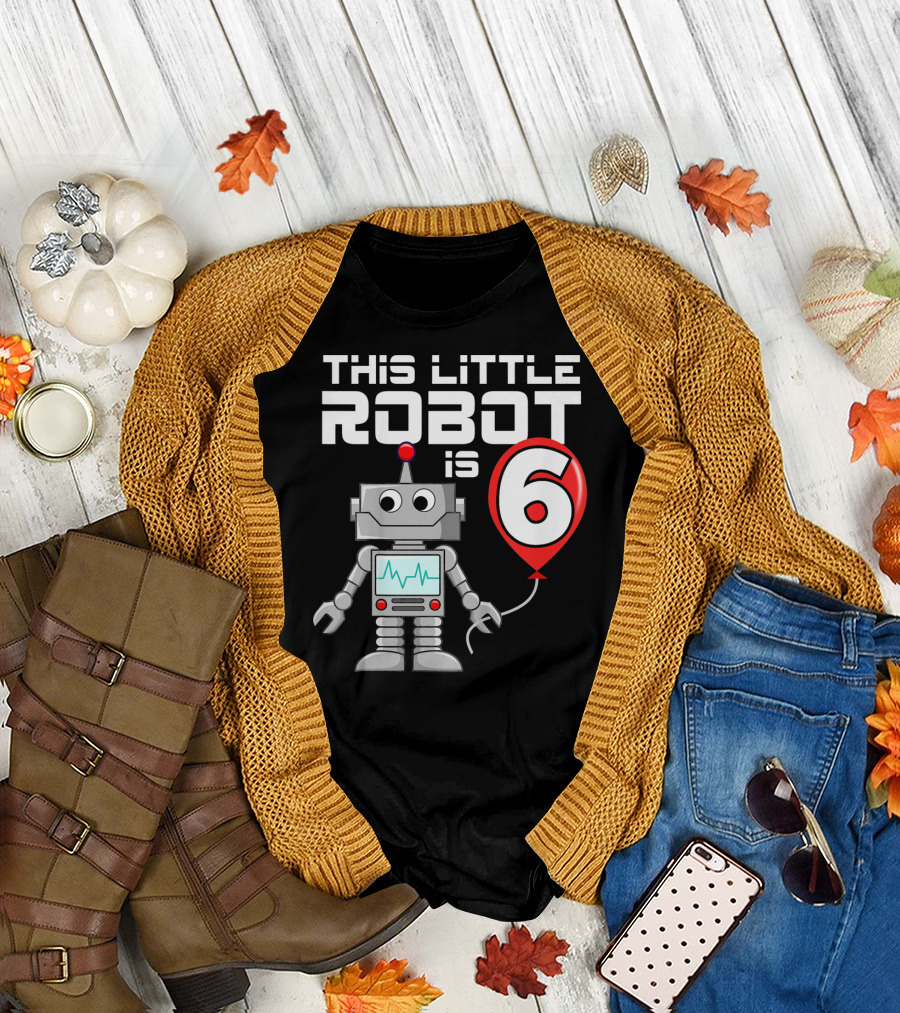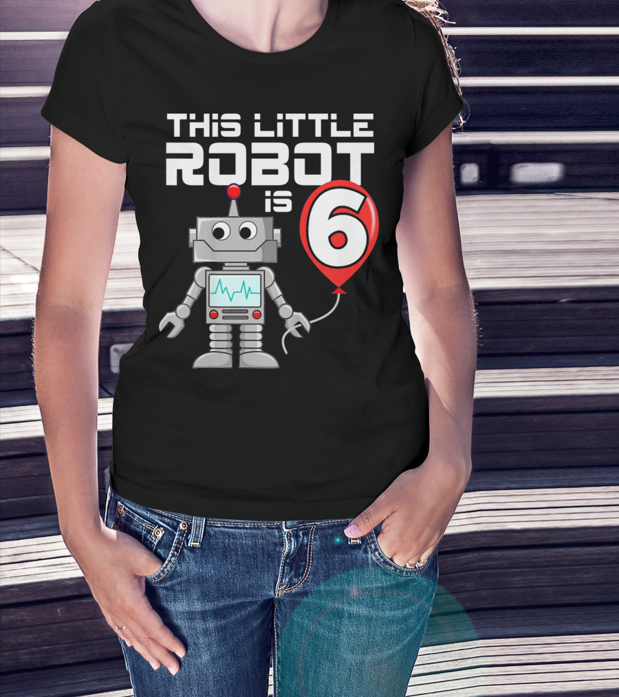 This Little Robot Is 6 Birthday Balloon Celebration Sci-Fi Kids T-Shirt
