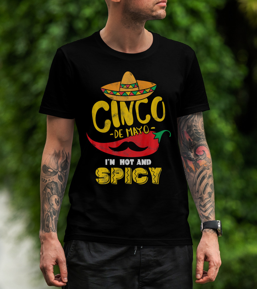 Cinco De Mayo Hot And Spicy Chili Pepper Sombrero Mustache Fiesta Vibes T-Shirt