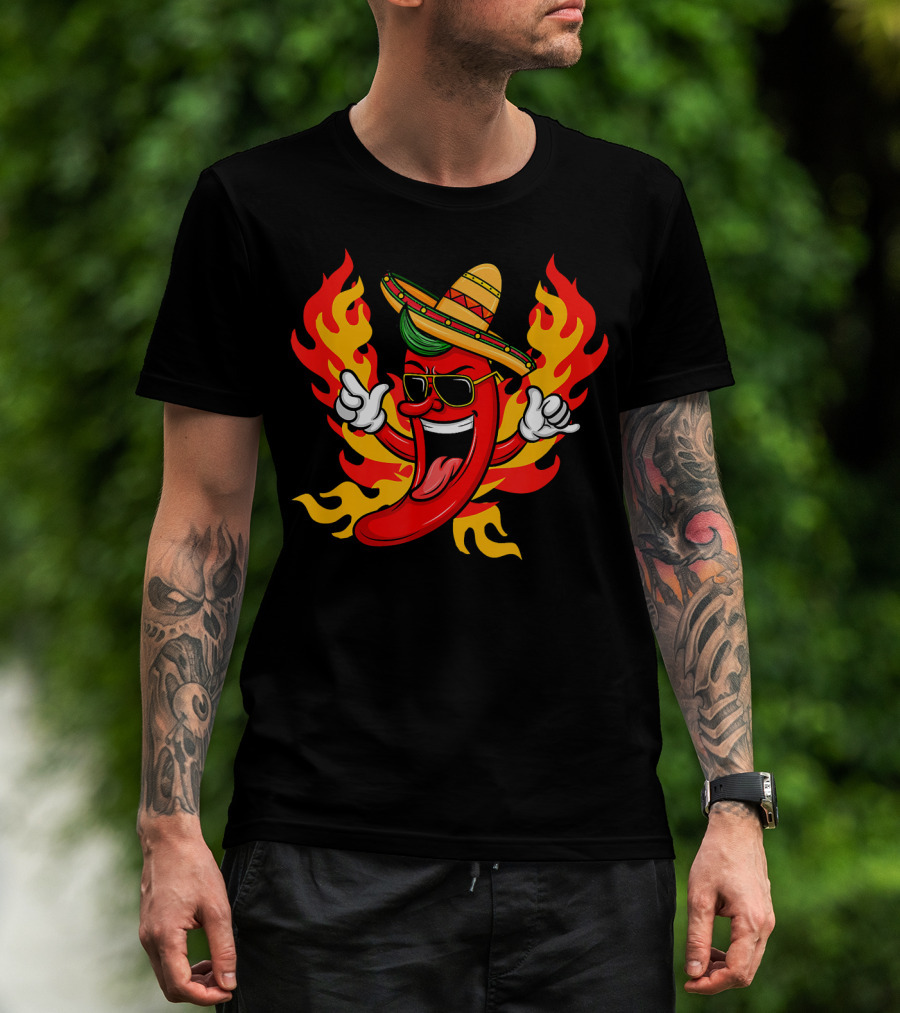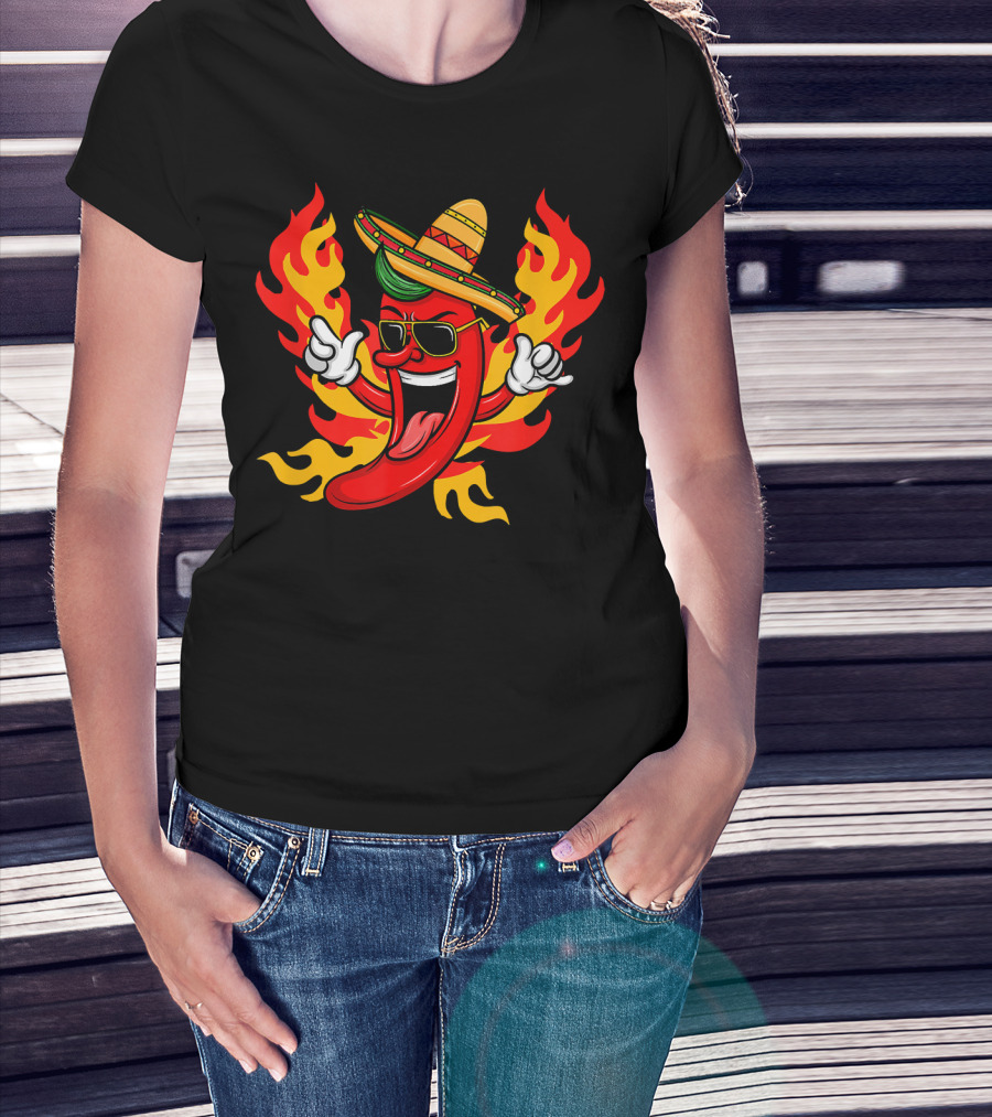 Cool Peppers Hot And Spicy Chili Flame Sombrero Party T-Shirt