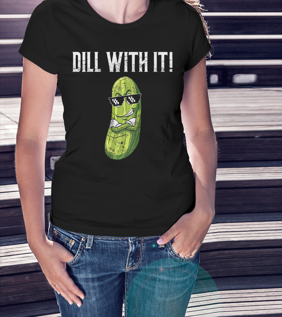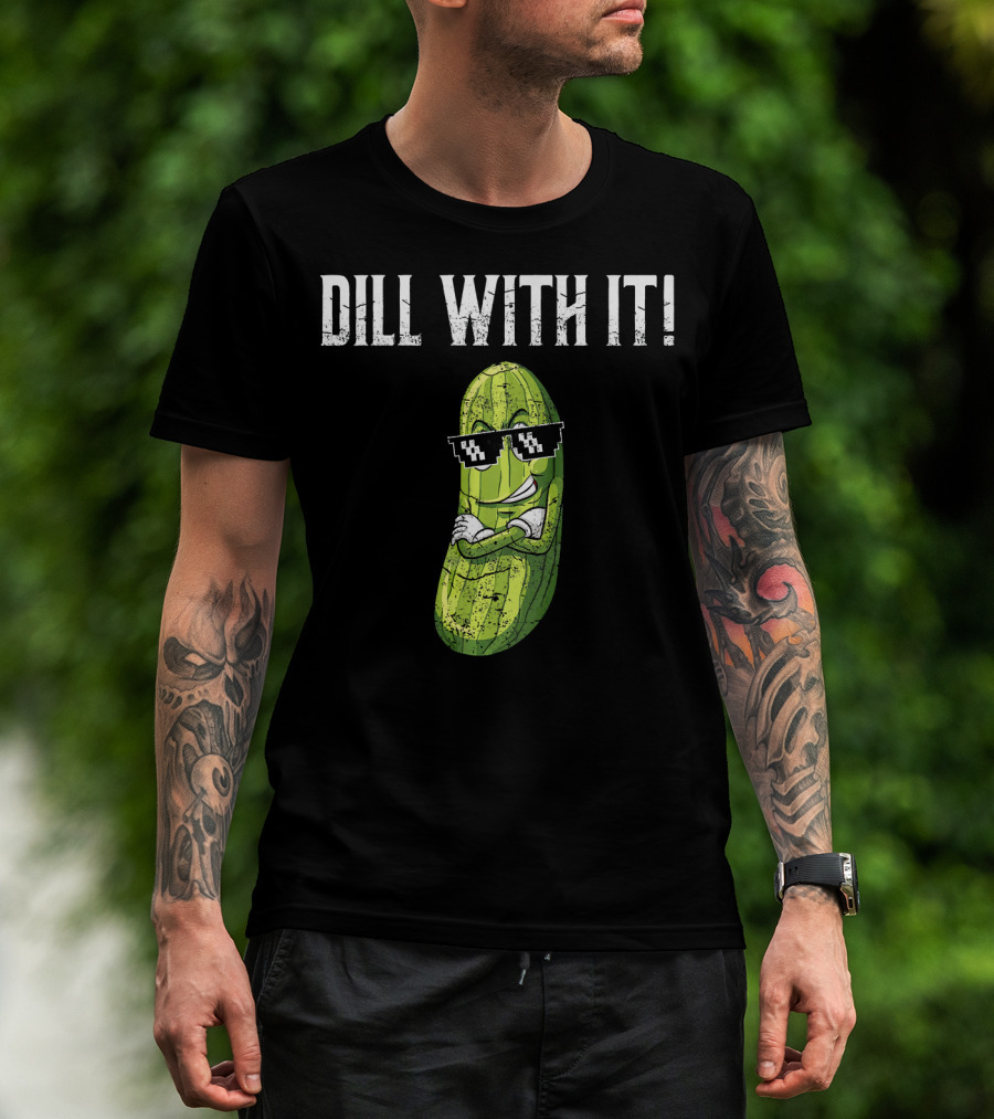 Dill With It Funny Pickle Pun Sunglasses Cool Attitude T-Shirt