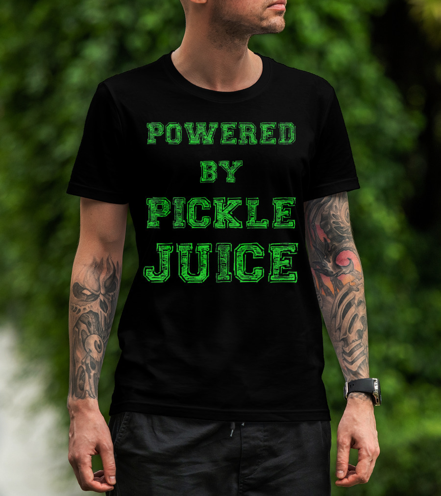 Powered By Pickle Juice Funny Gym Yoga Motivation T-Shirt