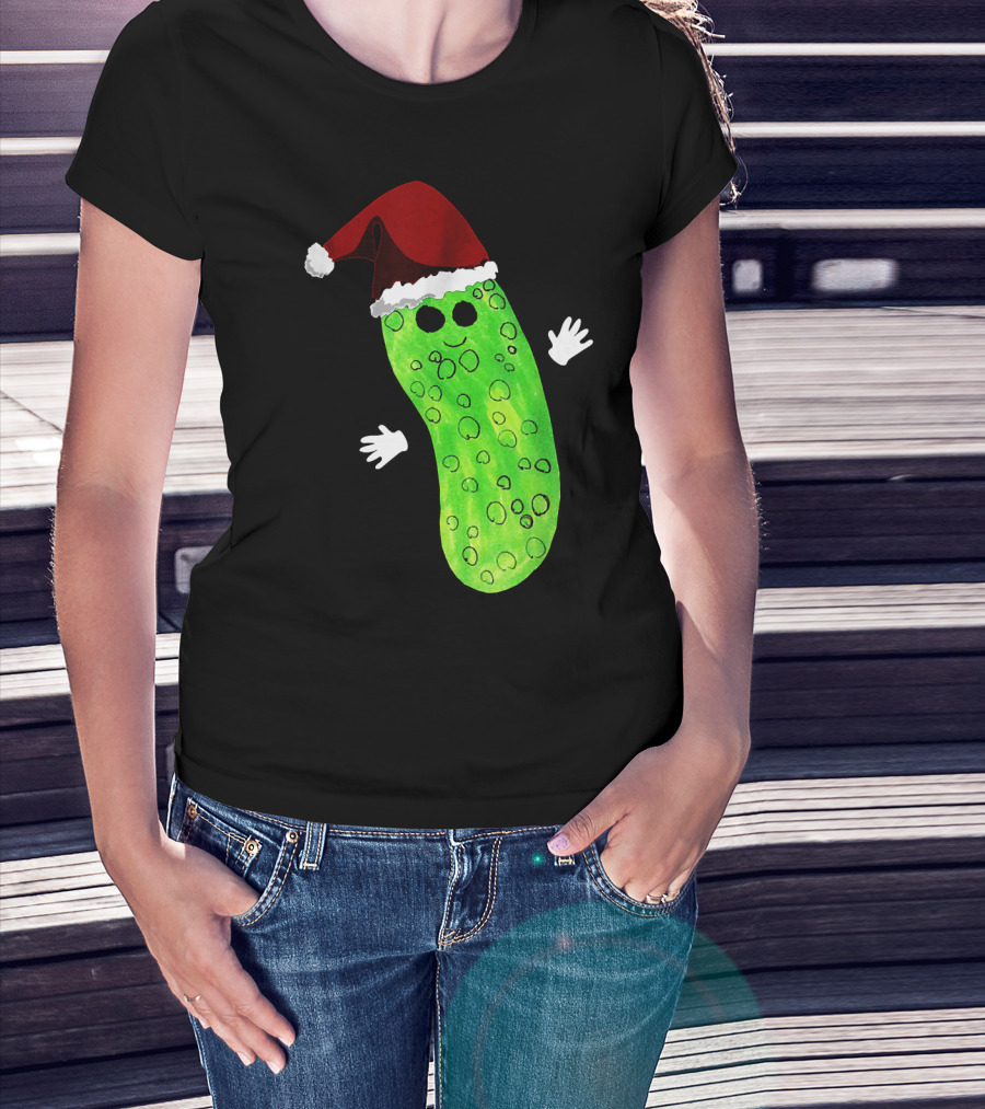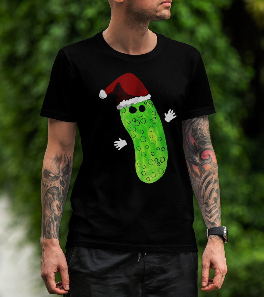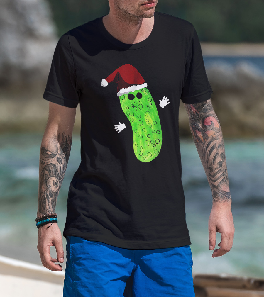 Christmas Pickle Wearing Santa Hat T-Shirt