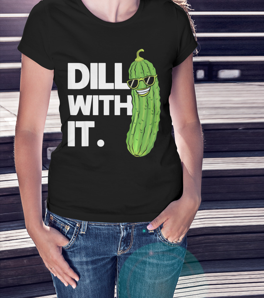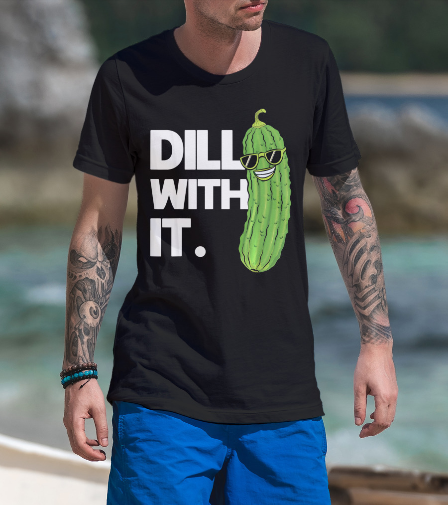 Dill With It Funny Pickle Joke Pun Pickle Wearing Sunglasses T-Shirt