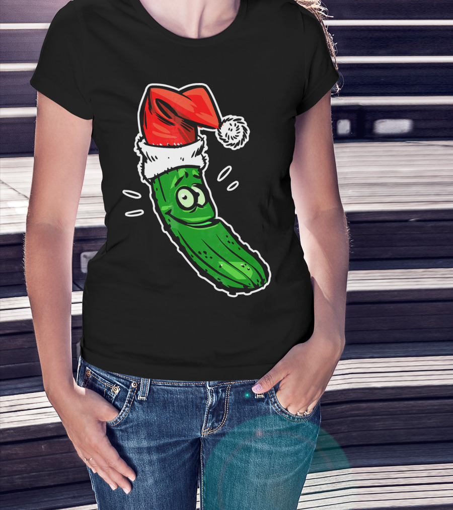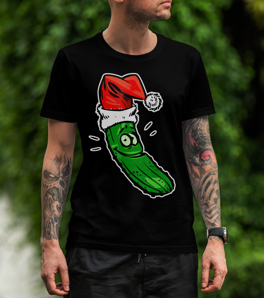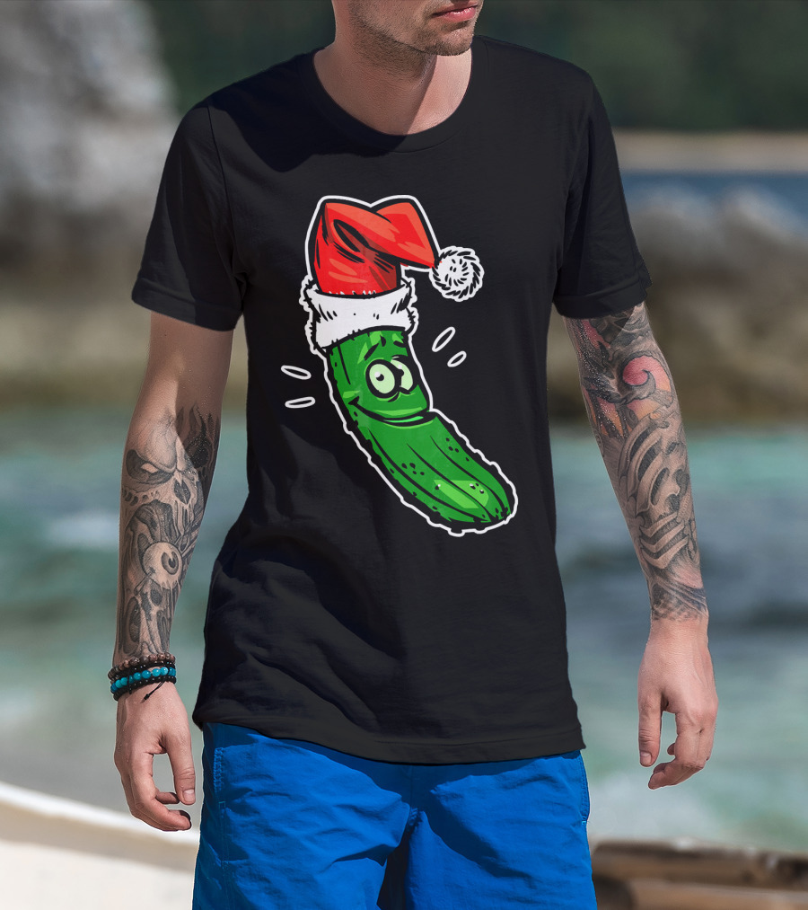 Funny Santa Pickle Christmas Cartoon Santa Hat T-Shirt