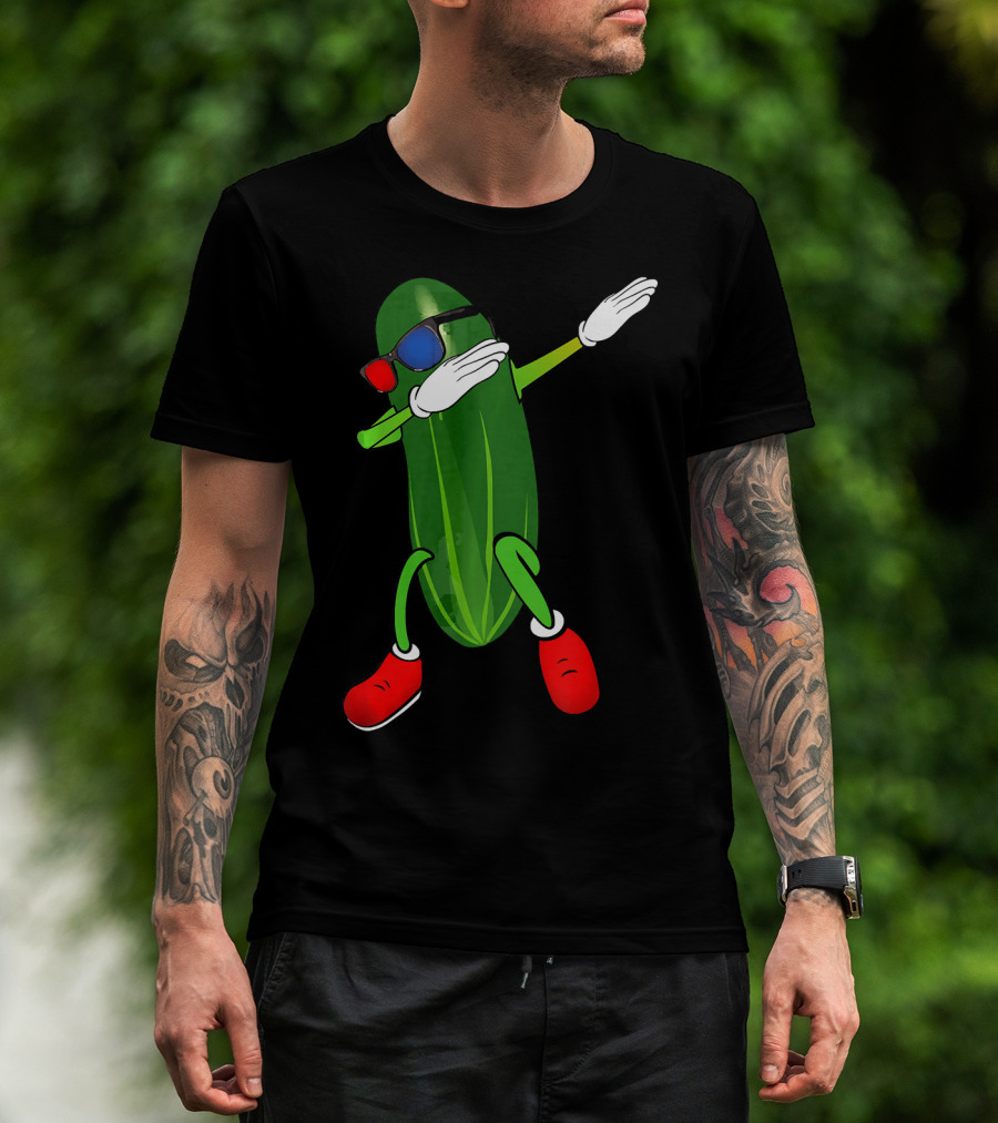 Dancing Cucumber Pickle Lover Dabbing With Sunglasses And Red Shoes T-Shirt