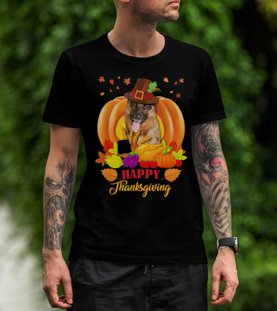German Shepherd Happy Thanksgiving Pumpkin Harvest Dog T-Shirt
