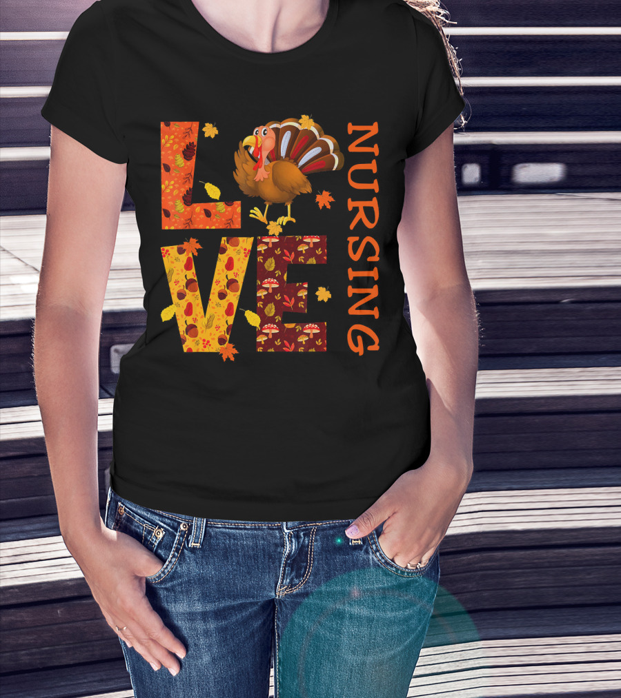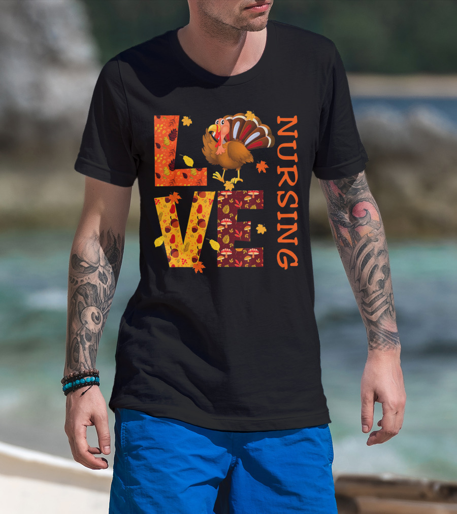 LOVE Nursing Nurse Turkey Autumn Thanksgiving T-Shirt