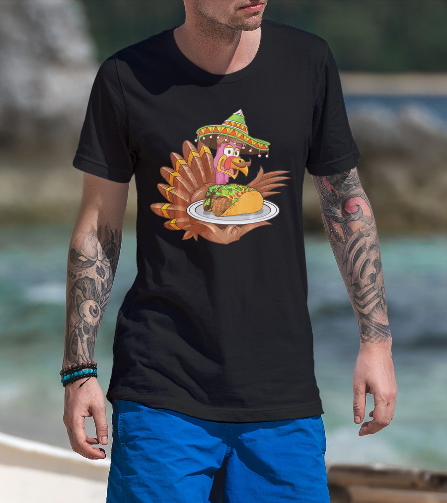 Cool Turkey Wearing Sombrero Holding Tacos T-Shirt