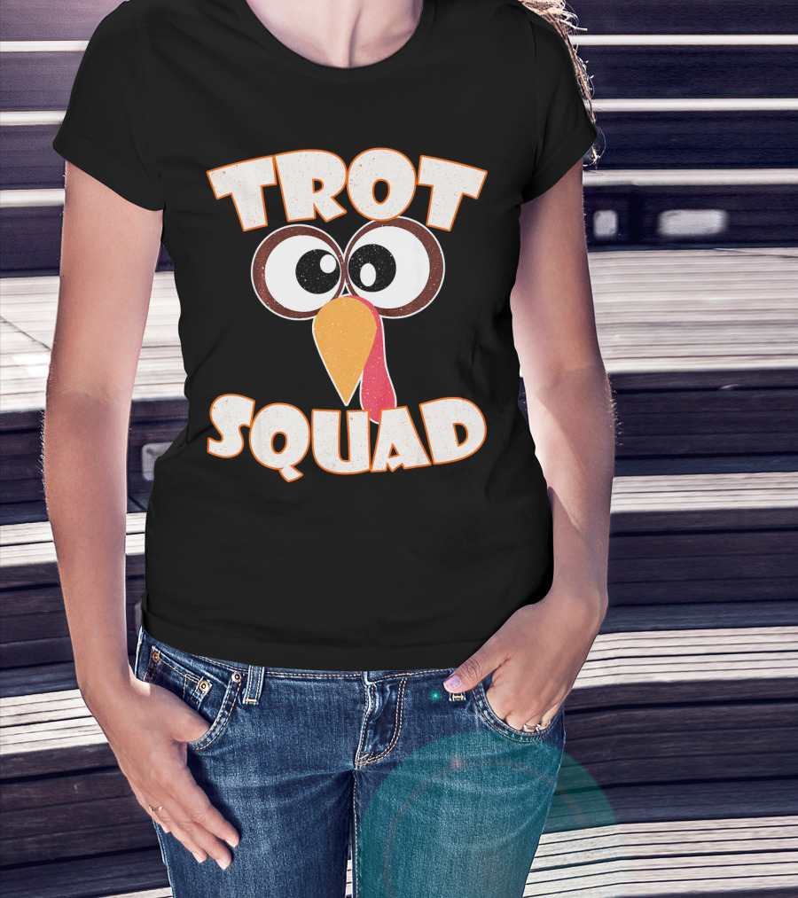 The Trot Squad Turkey Face Eyes and Beak T-shirt is designed for everyday wear and a consistent fit. Fabric is pre-shrunk ring-spun cotton with durable stitching. See the size chart below for exact measurements.