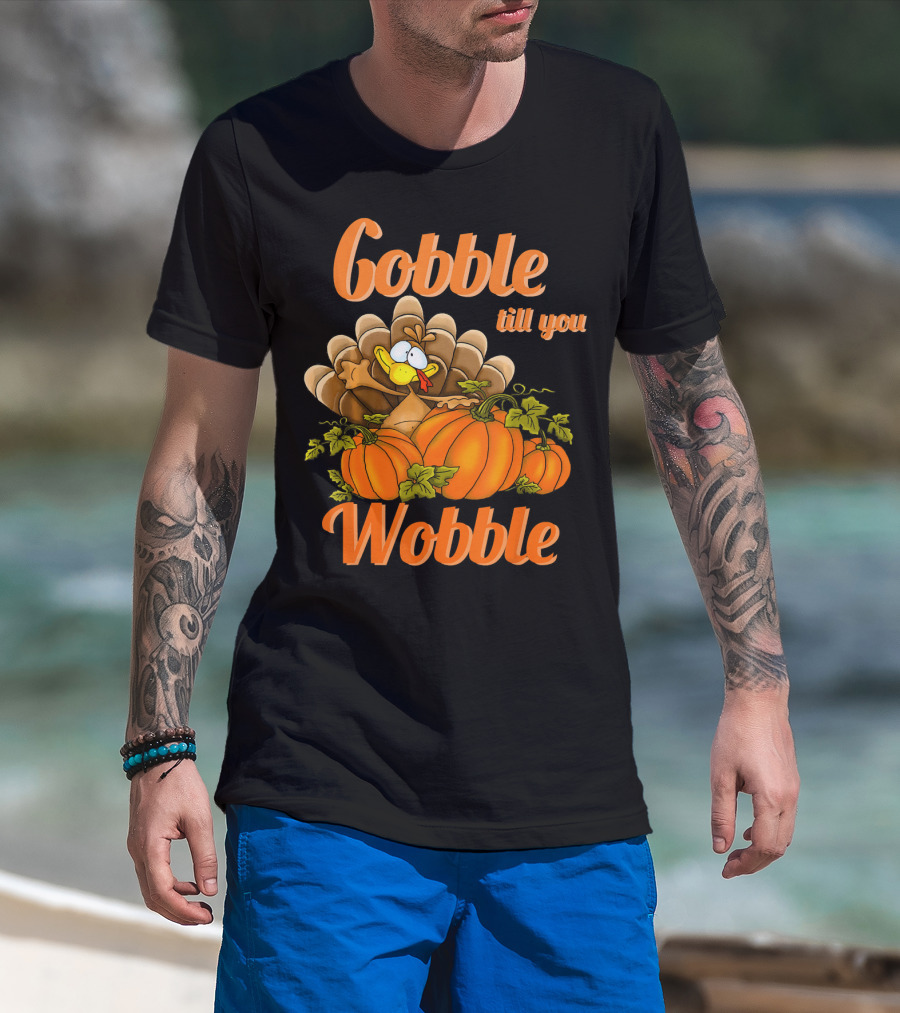 Gobble Till You Wobble Turkey With Pumpkins T-Shirt