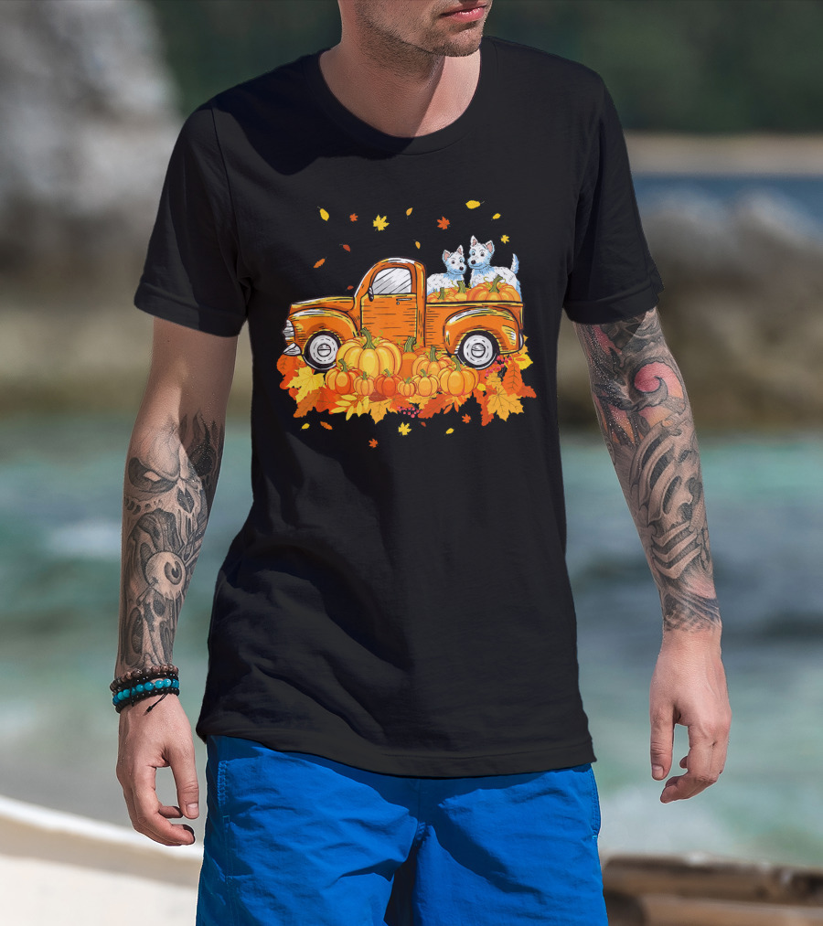 Westie Dogs In Pumpkin Truck With Fall Leaves Halloween T-Shirt
