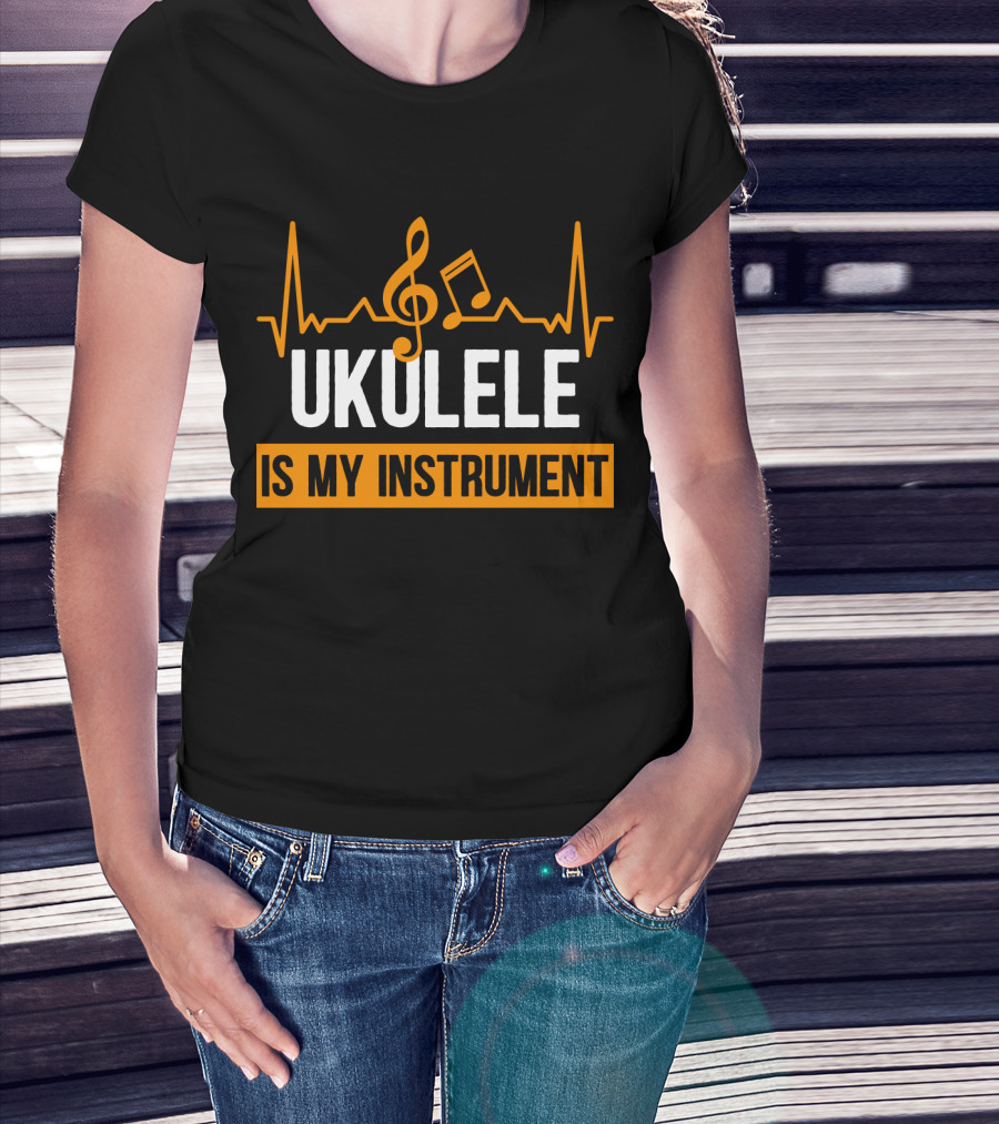 Ukulele Is My Instrument Clef Note Heartbeat Line T-Shirt