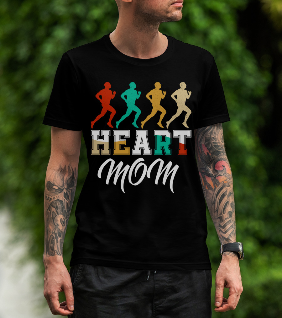 The HEART MOM Running Retro T-shirt is designed for everyday wear and a consistent fit. Fabric is pre-shrunk ring-spun cotton with durable stitching. See the size chart below for exact measurements.