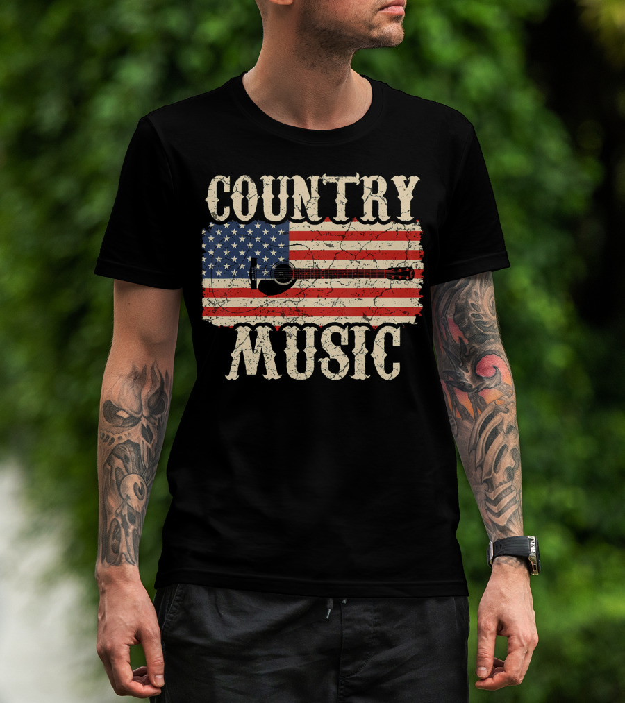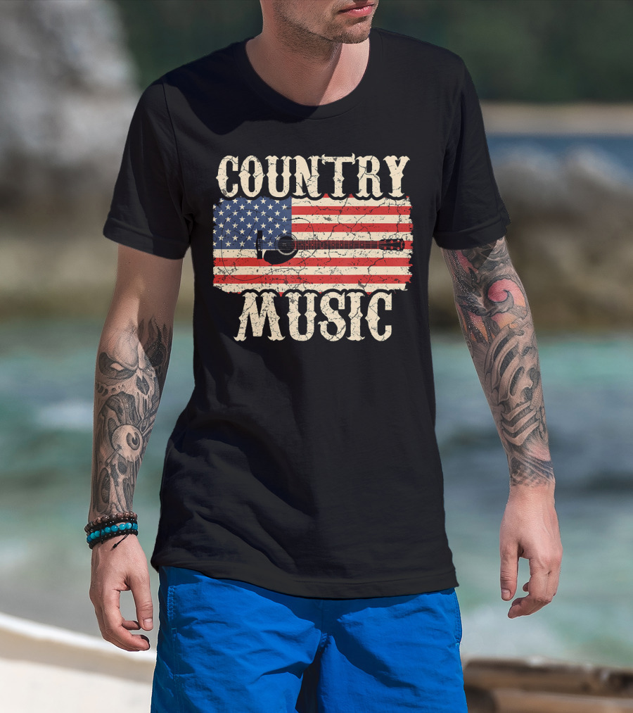 Country Music Vintage American Flag Guitar Retro 102 T-Shirt