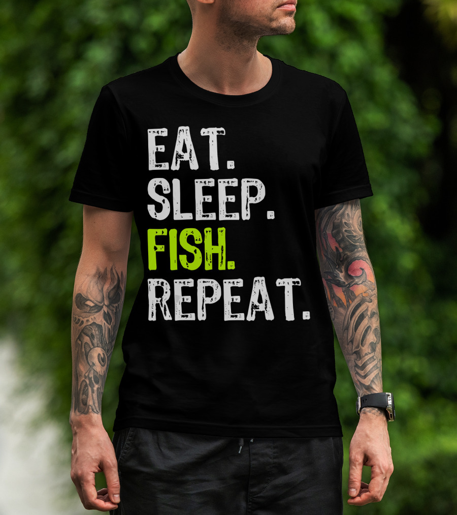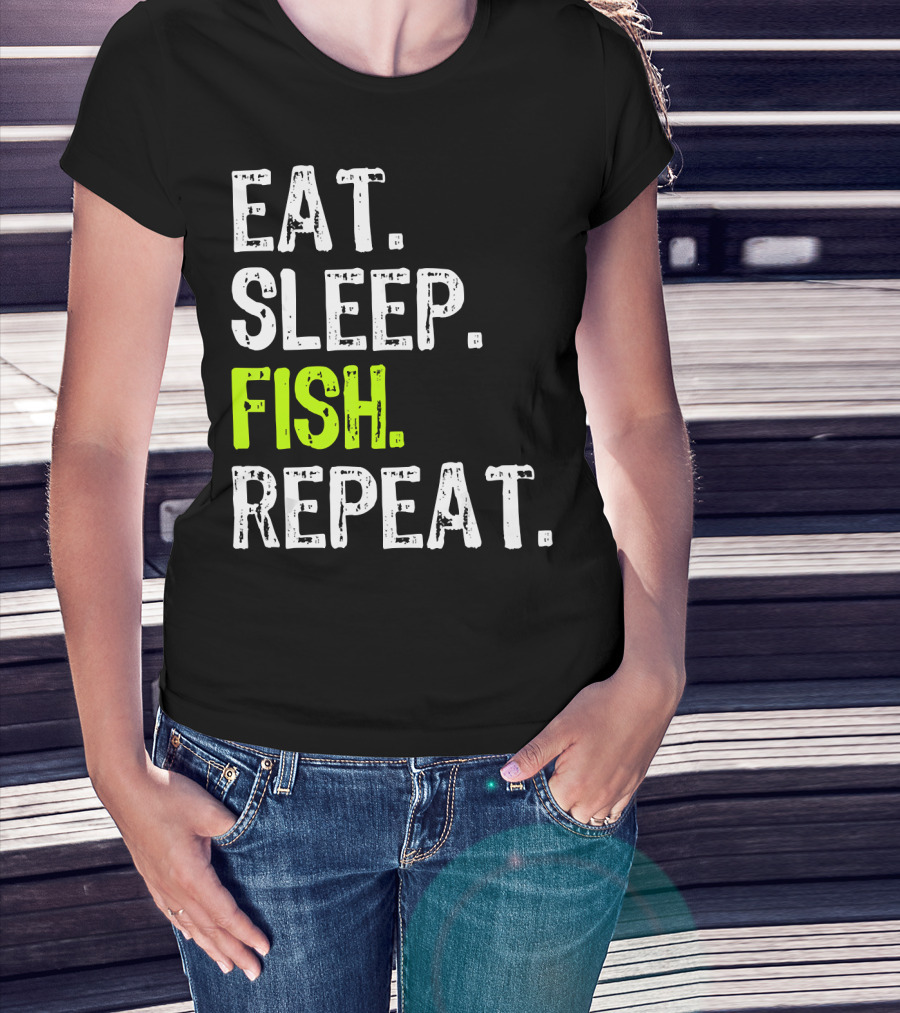 The Eat Sleep Fish Repeat Funny Fishing 148 T-shirt is designed for everyday wear and a consistent fit. Fabric is pre-shrunk ring-spun cotton with durable stitching. See the size chart below for exact measurements.