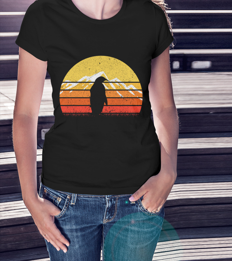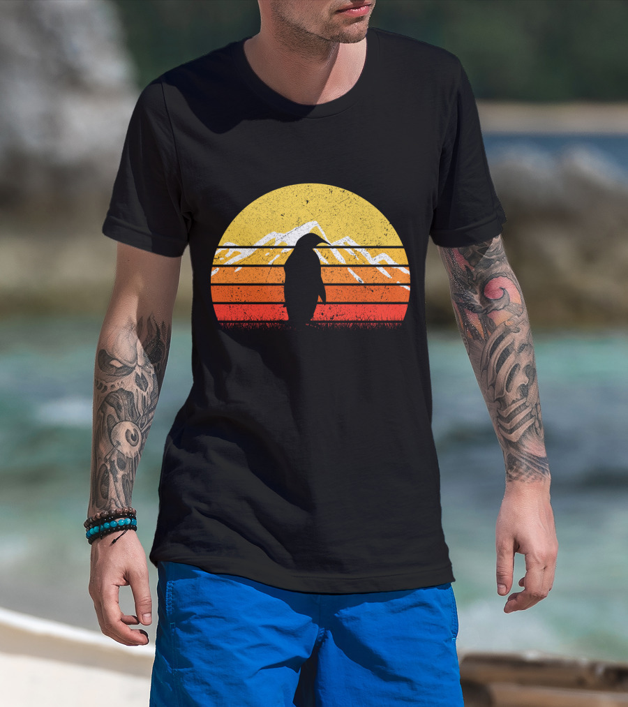 Retro Vintage Penguin Sunset Mountain T-Shirt