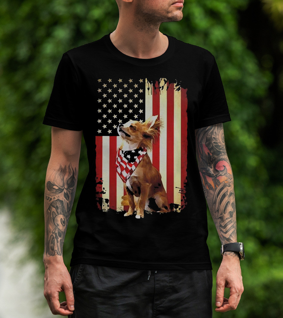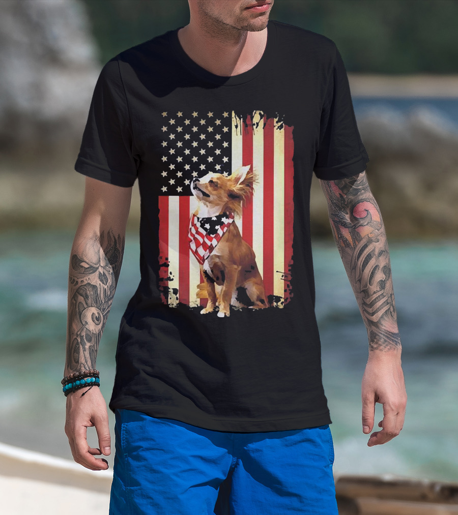 Patriotic Chihuahua With American Flag Background T-Shirt