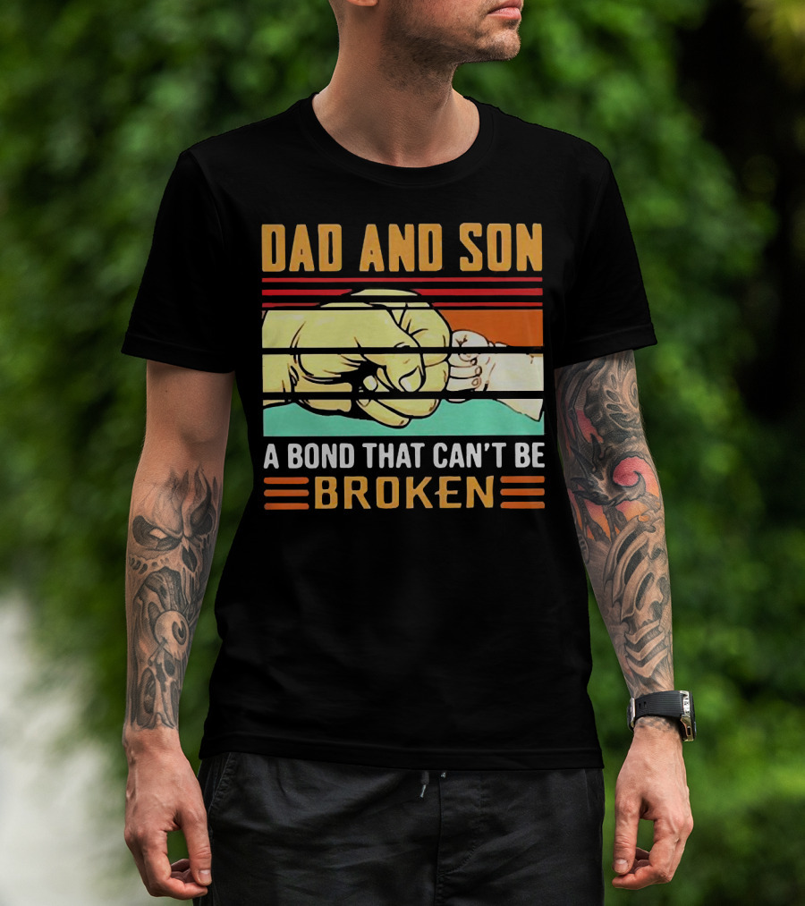 The Dad and Son A Bond That Can't Be Broken Fist Bump Retro Stripes T-shirt is designed for everyday wear and a consistent fit. Fabric is pre-shrunk ring-spun cotton with durable stitching. See the size chart below for exact measurements.