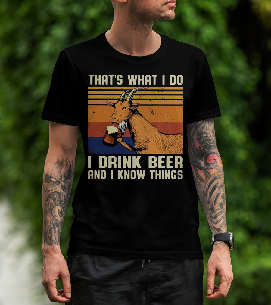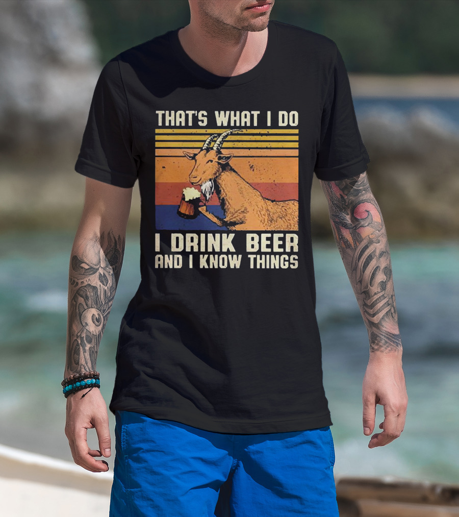 THAT'S WHAT I DO I DRINK BEER AND I KNOW THINGS GOAT VINTAGE STRIPES T-Shirt