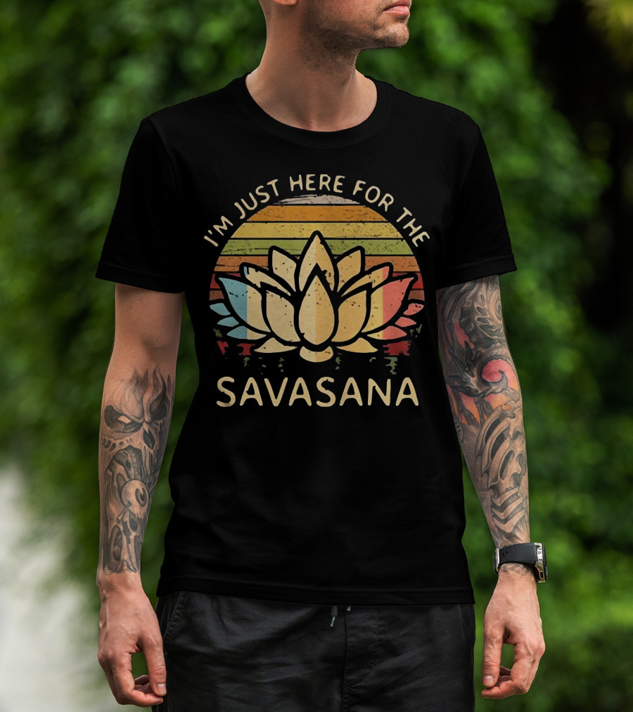 I'm Just Here For The Savasana Lotus With Retro Sunset Stripes T-Shirt