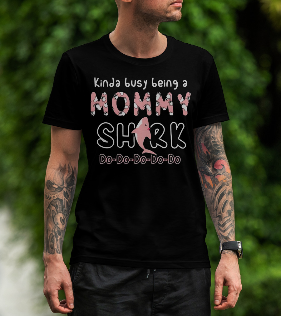 Kinda Busy Being A Mommy Shark Do Do Do Do Do With Pink Shark T-Shirt