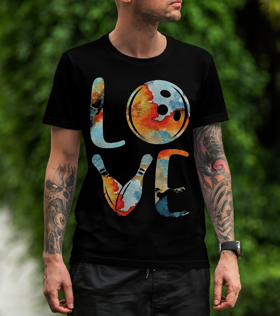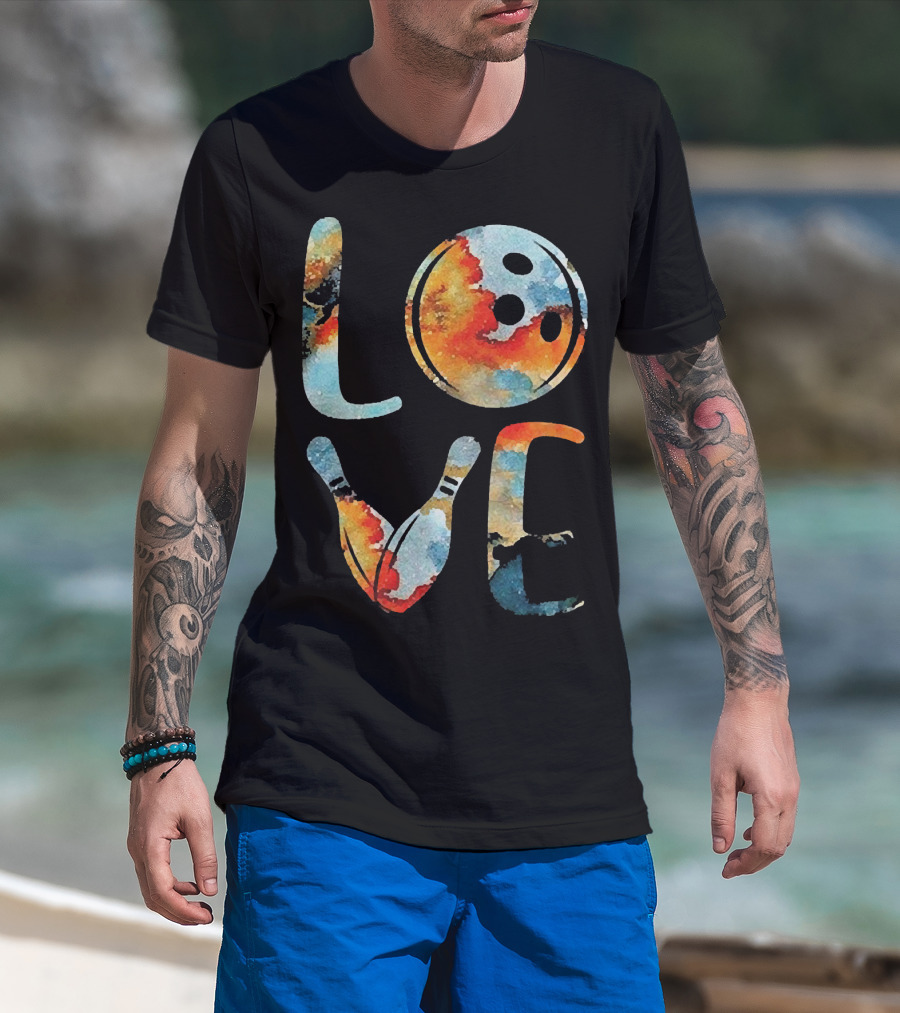 LOVE Bowling Pins And Ball Colorful Print T-Shirt