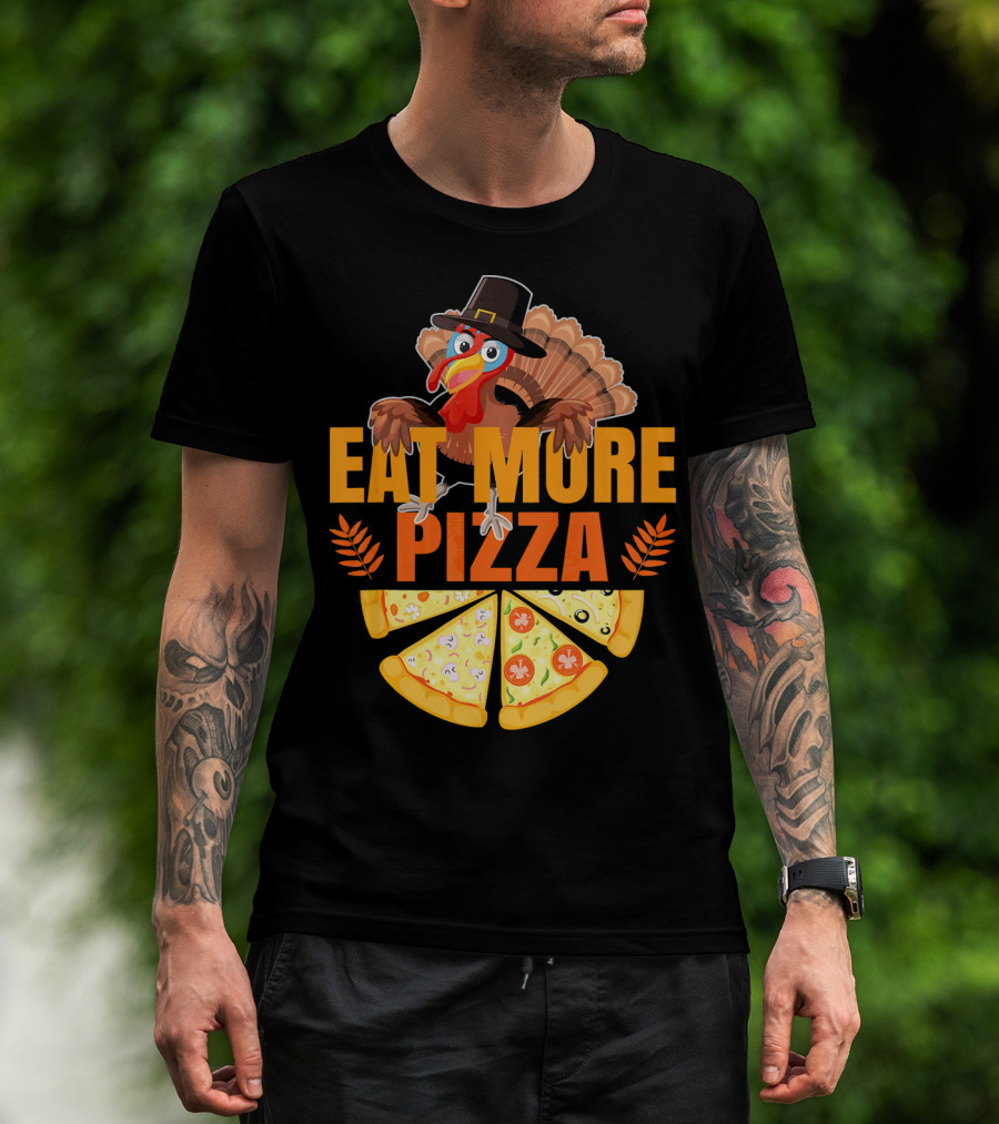 The Eat More Pizza Turkey Thanksgiving Hat Pizza Slices T-shirt is designed for everyday wear and a consistent fit. Fabric is pre-shrunk ring-spun cotton with durable stitching. See the size chart below for exact measurements.