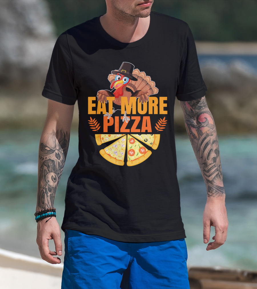 Eat More Pizza Turkey Thanksgiving Hat Pizza Slices T-Shirt