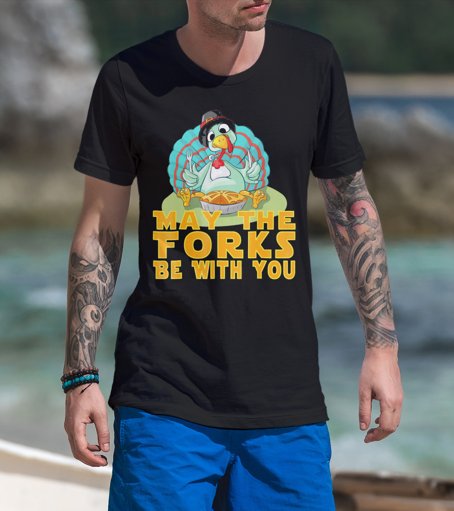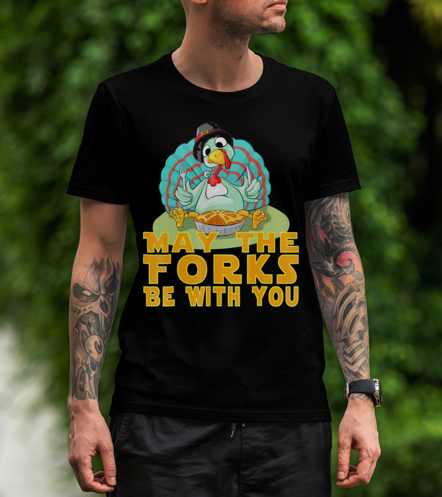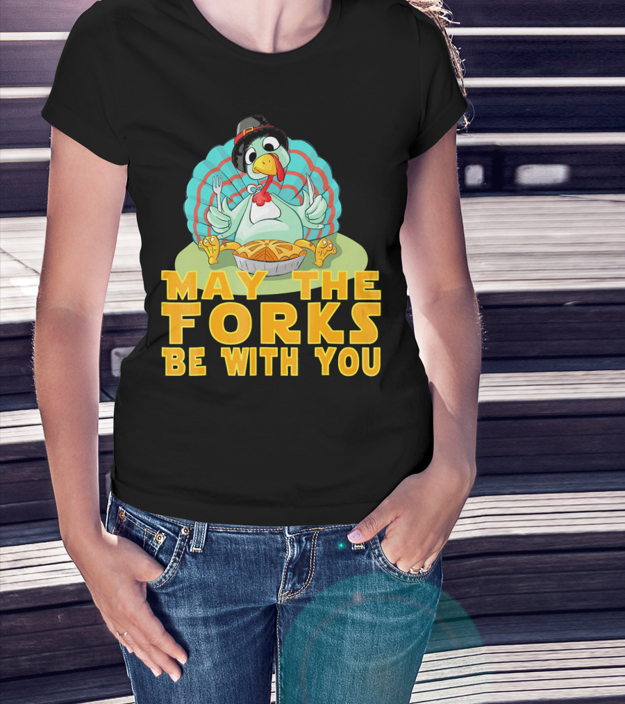 Cute Thanksgiving Turkey May The Forks Be With You Holiday T-Shirt