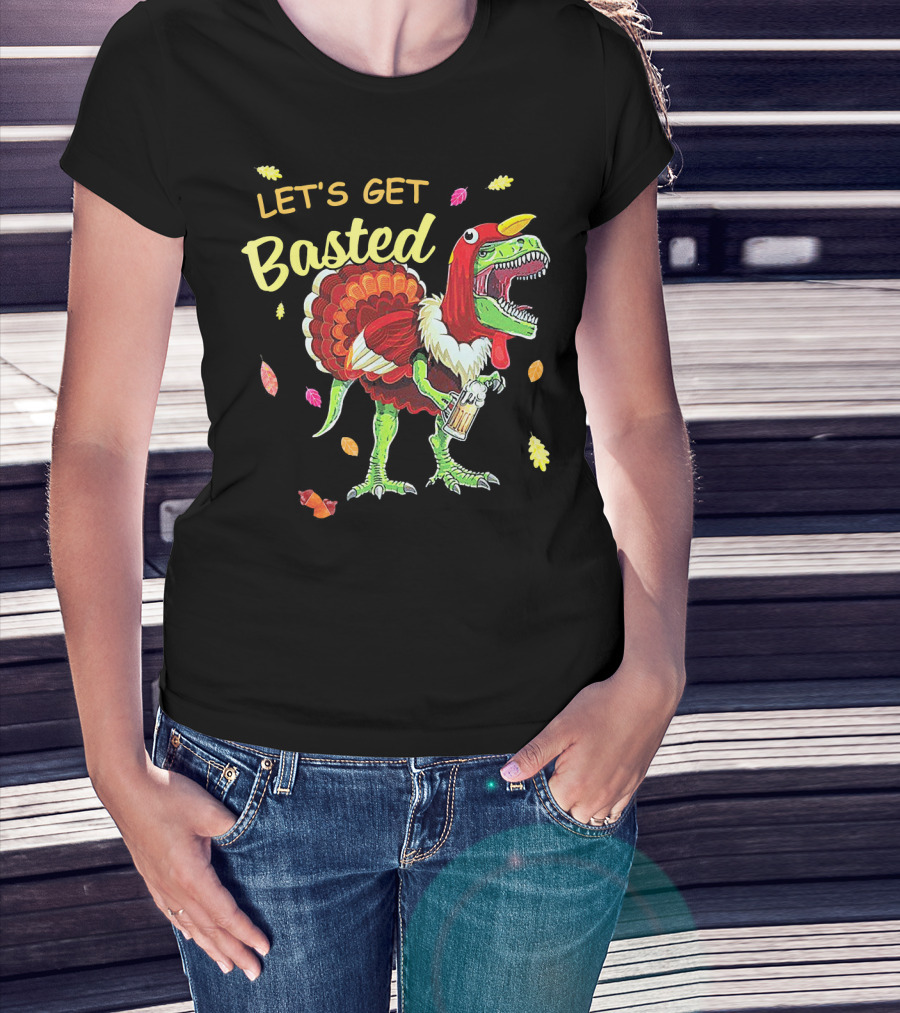 LET'S GET BASTED DINOSAUR TURKEY BEER THANKSGIVING LEAVES T-Shirt