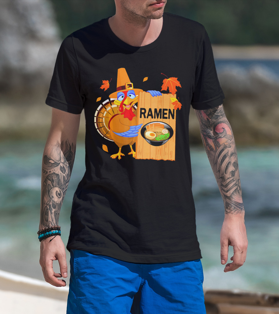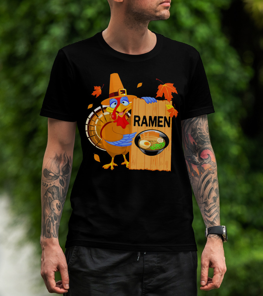 Thanksgiving Turkey With Ramen Bowl And Leaves T-Shirt