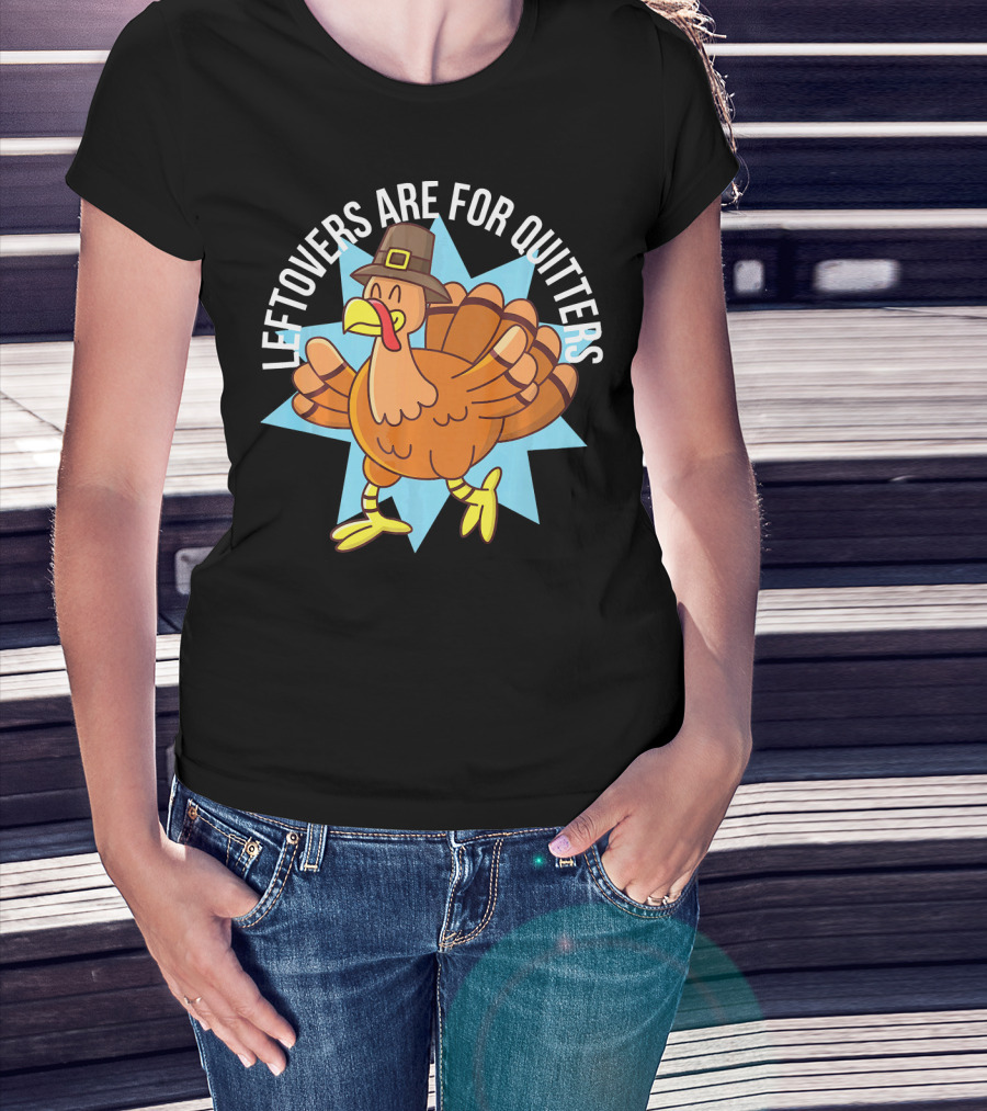 Funny Thanksgiving Leftovers Are For Quitters Turkey Cartoon T-Shirt