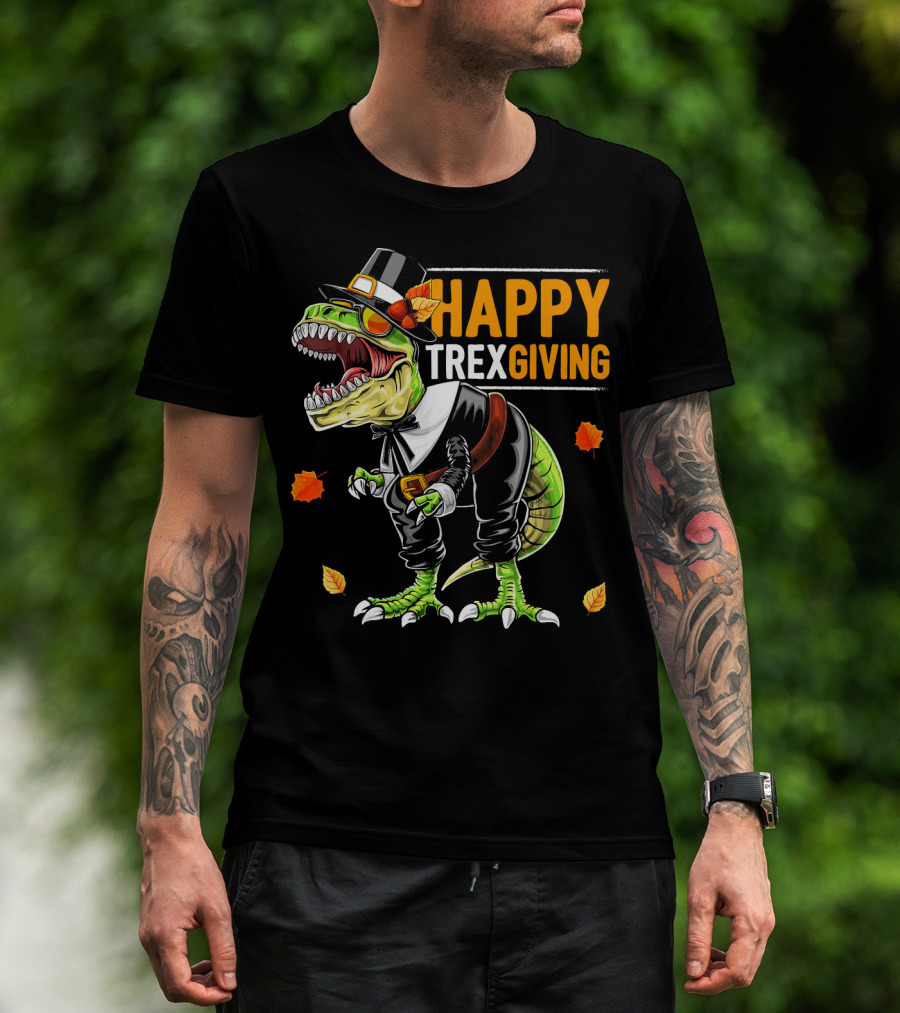 HAPPY TREXGIVING Dinosaur Pilgrim Thanksgiving T-Shirt