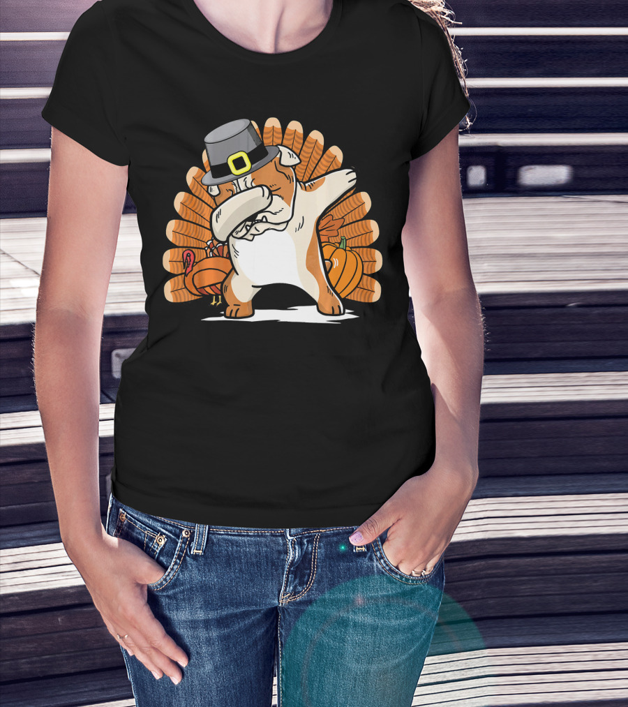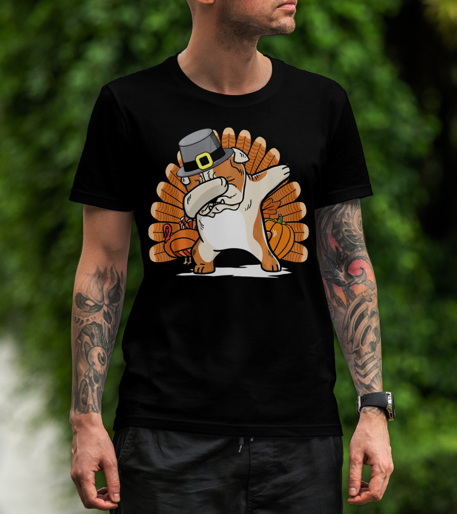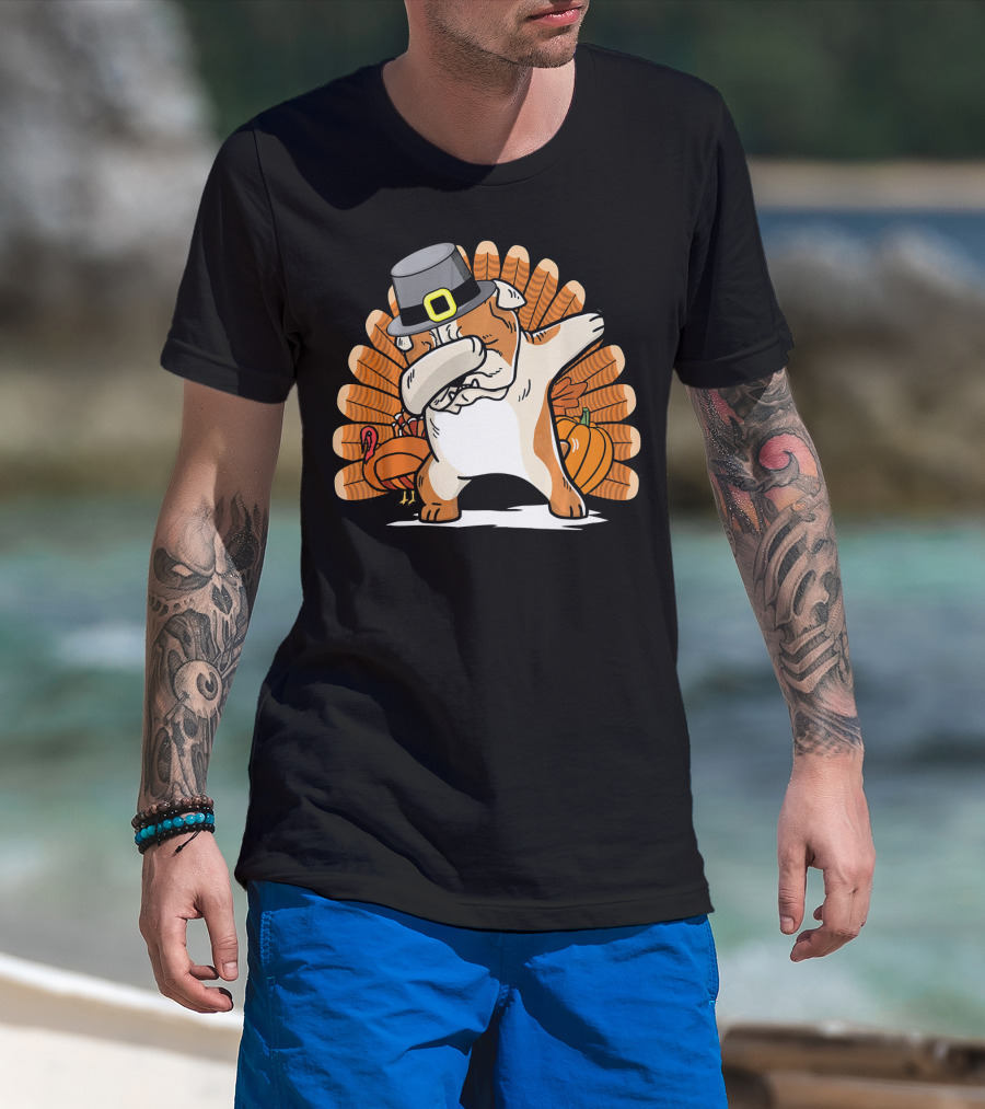 Funny Dabbing English Bulldog Thanksgiving Pilgrim Turkey Pumpkin T-Shirt