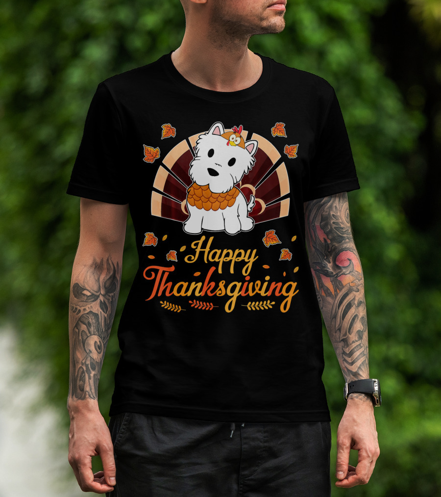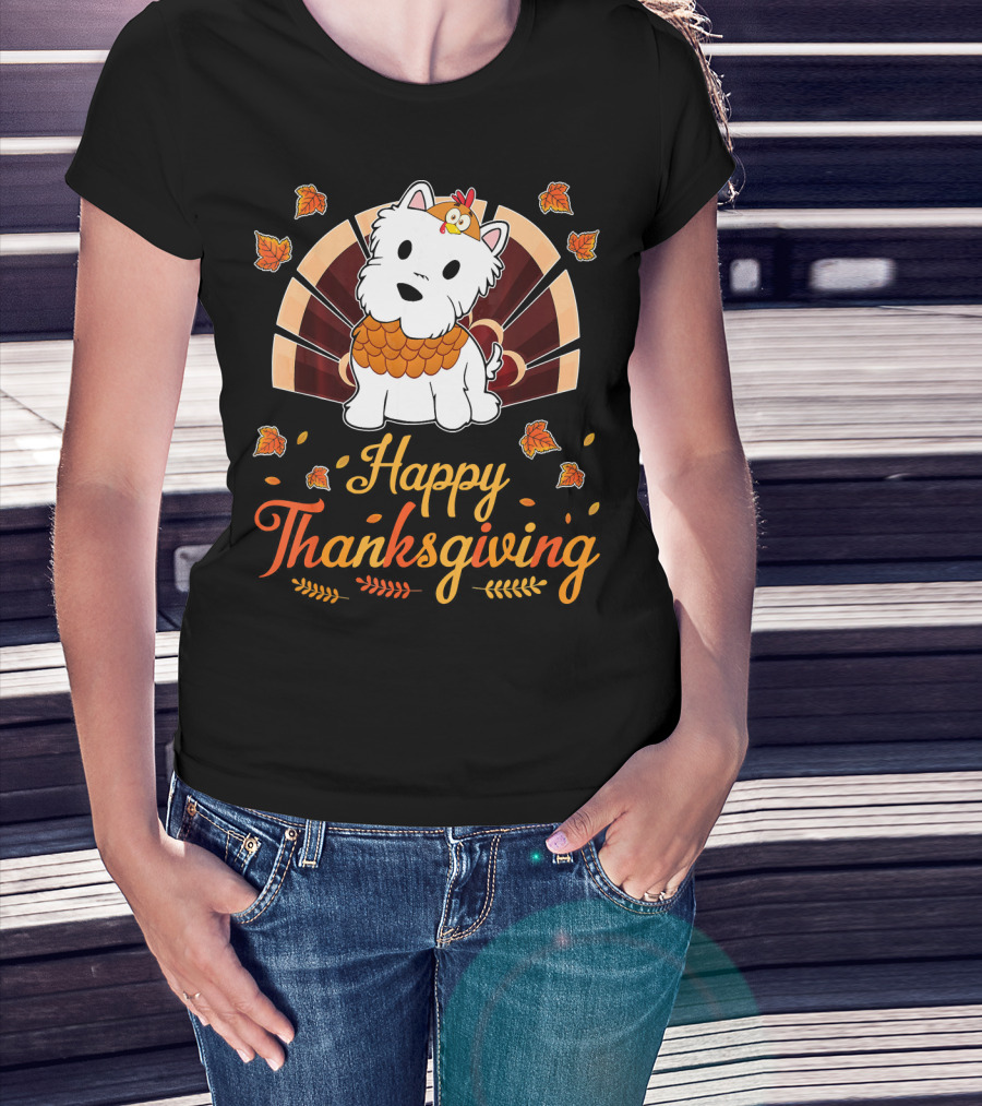 Happy Thanksgiving Turkey Westie Dog Autumn Leaves T-Shirt