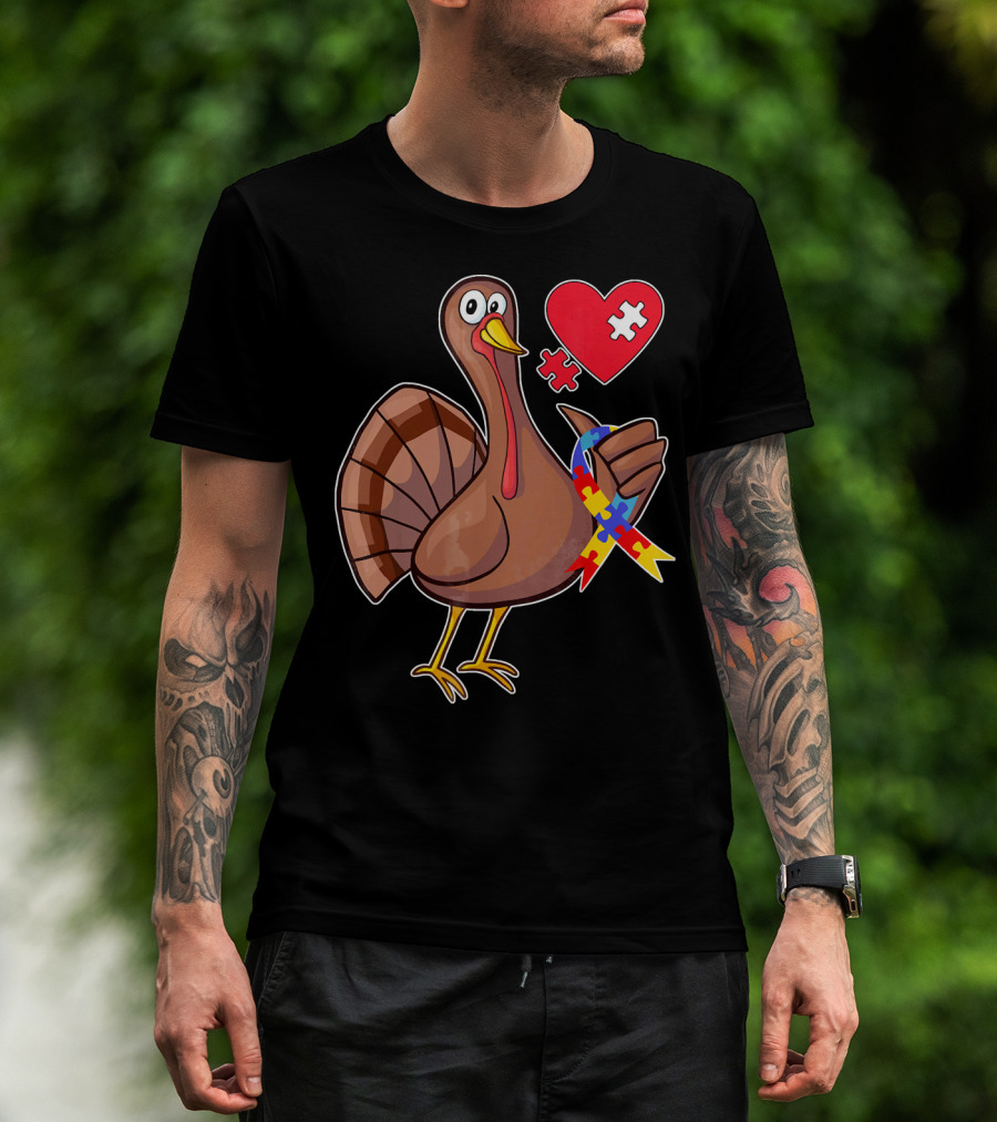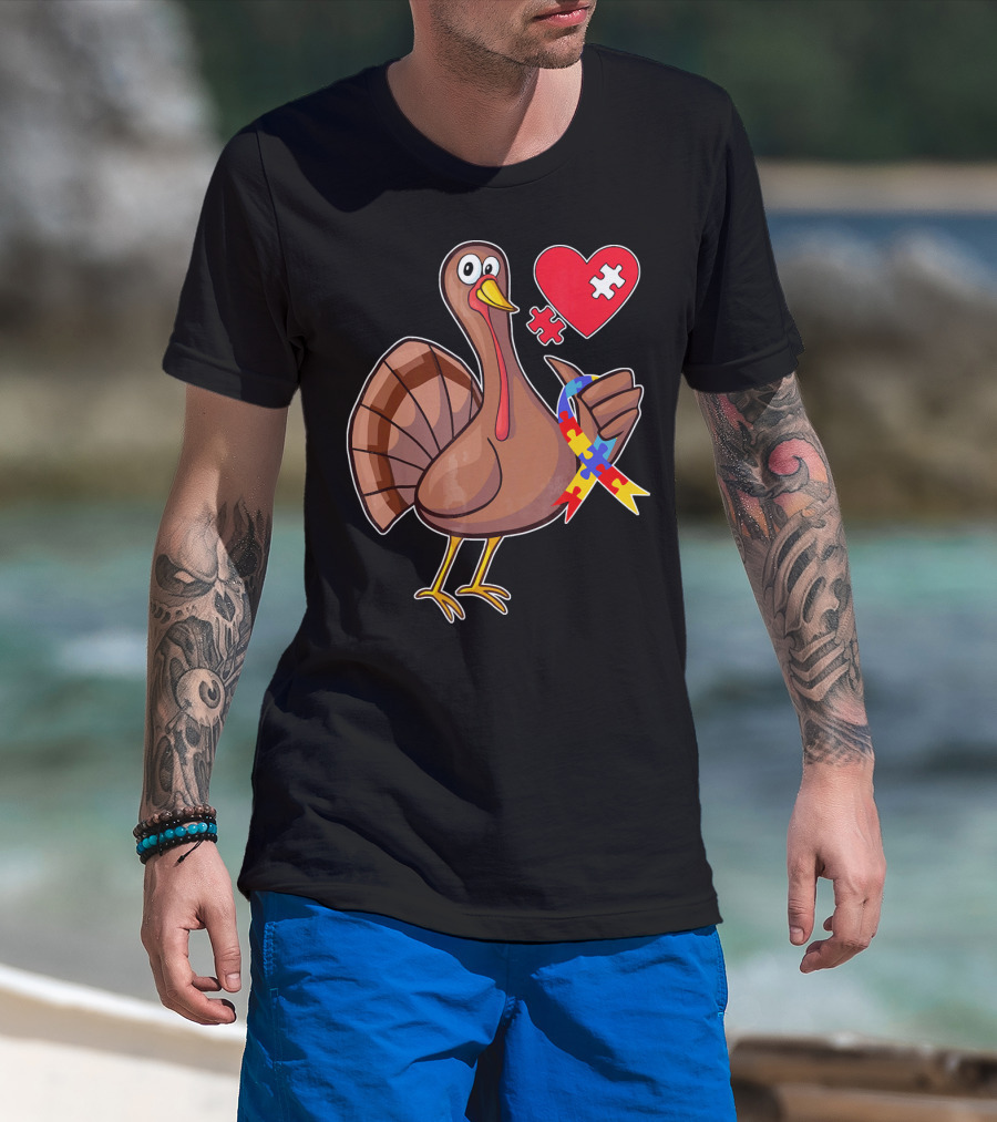 Funny Autism Awareness Turkey Heart Puzzle T-Shirt