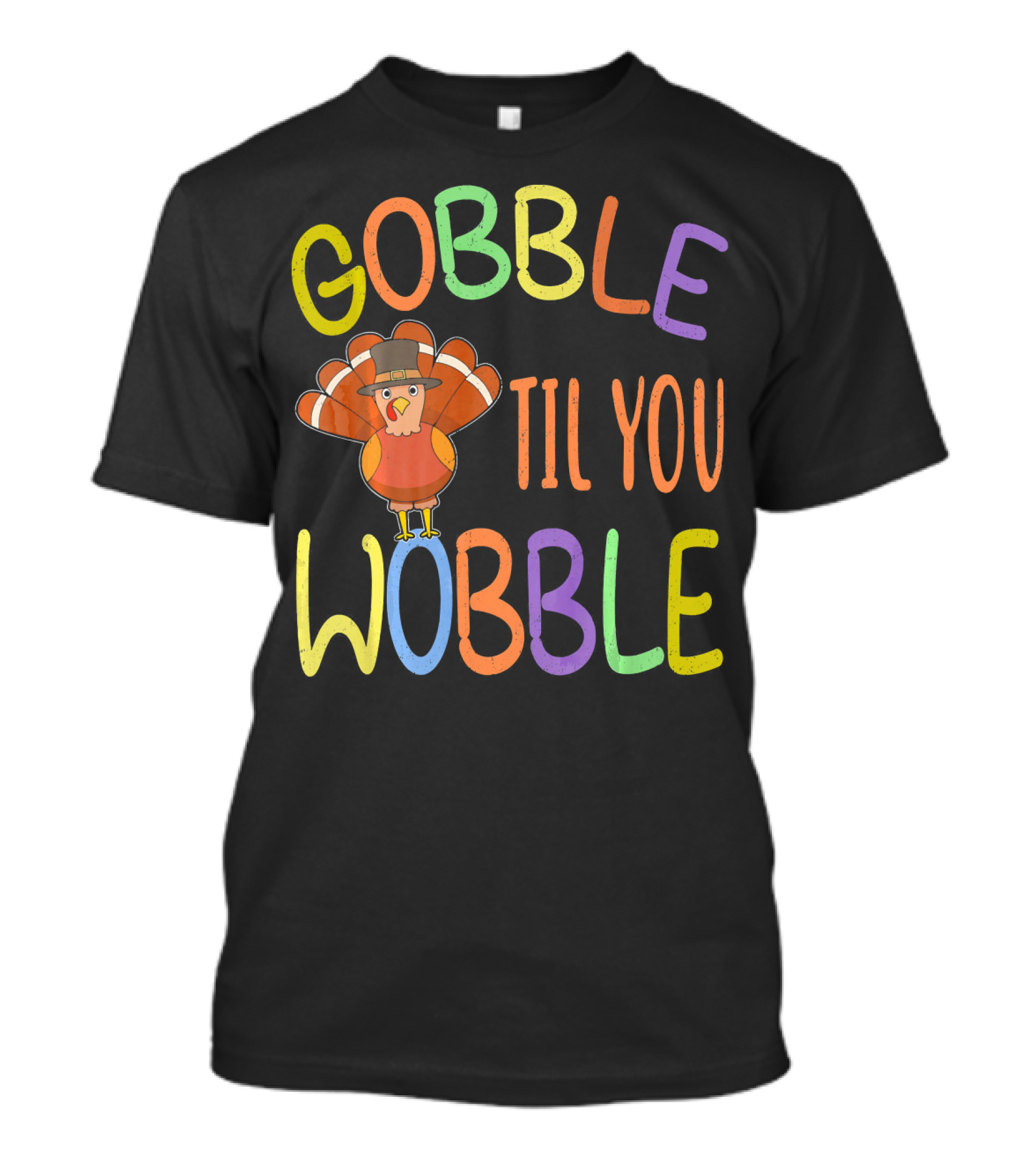 The Gobble Til You Wobble Turkey Day Thanksgiving Turkey Hat T-shirt is designed for everyday wear and a consistent fit. Fabric is pre-shrunk ring-spun cotton with durable stitching. See the size chart below for exact measurements.