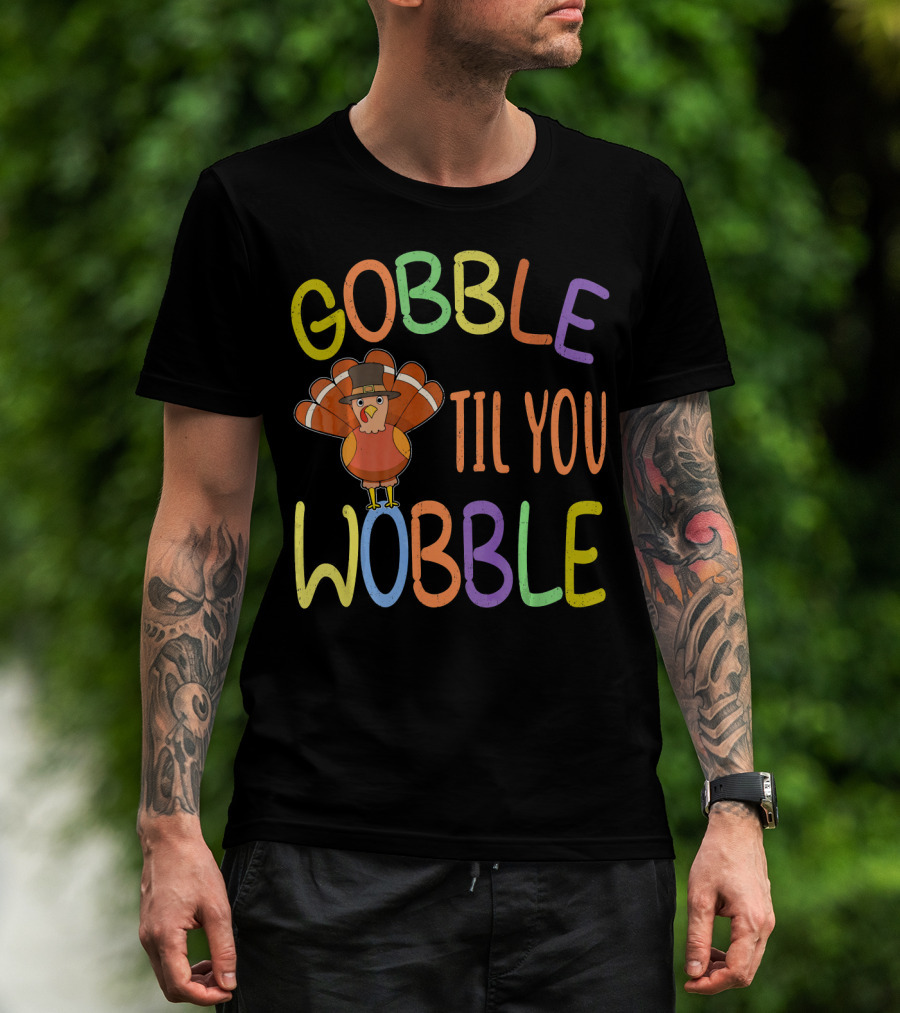 Gobble Til You Wobble Turkey Day Thanksgiving Turkey Hat T-Shirt