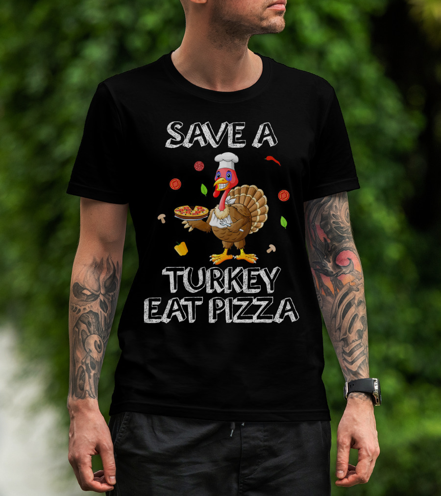 Save A Turkey Eat Pizza Funny Thanksgiving Pizza Chef Turkey Humor T-Shirt