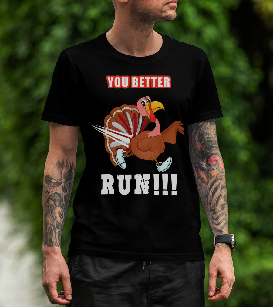 You Better Run Funny Turkey Cartoon Run T-Shirt
