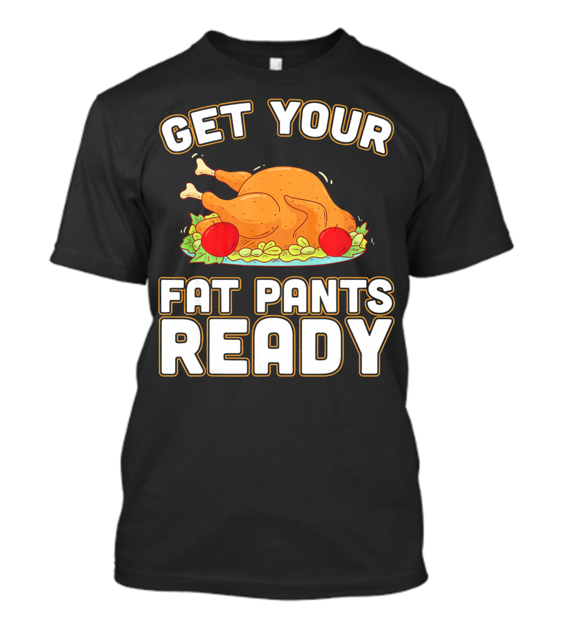 The Get Your Fat Pants Ready Turkey Dinner Fun T-shirt is designed for everyday wear and a consistent fit. Fabric is pre-shrunk ring-spun cotton with durable stitching. See the size chart below for exact measurements.