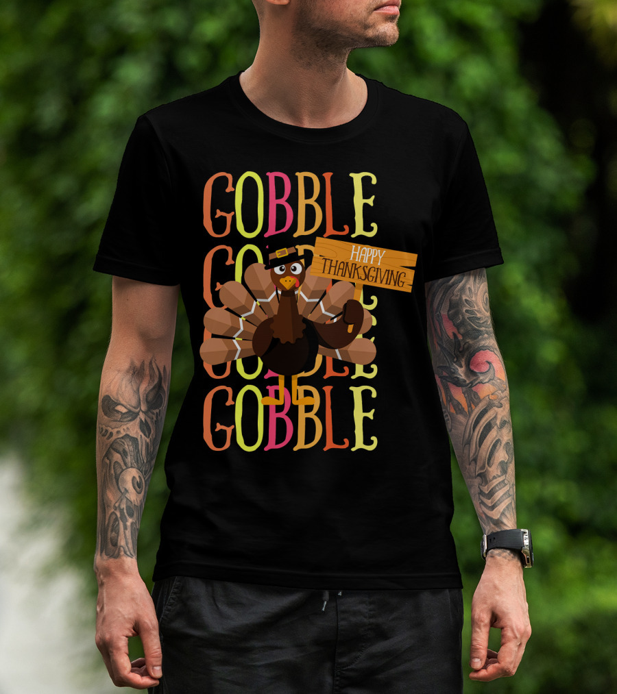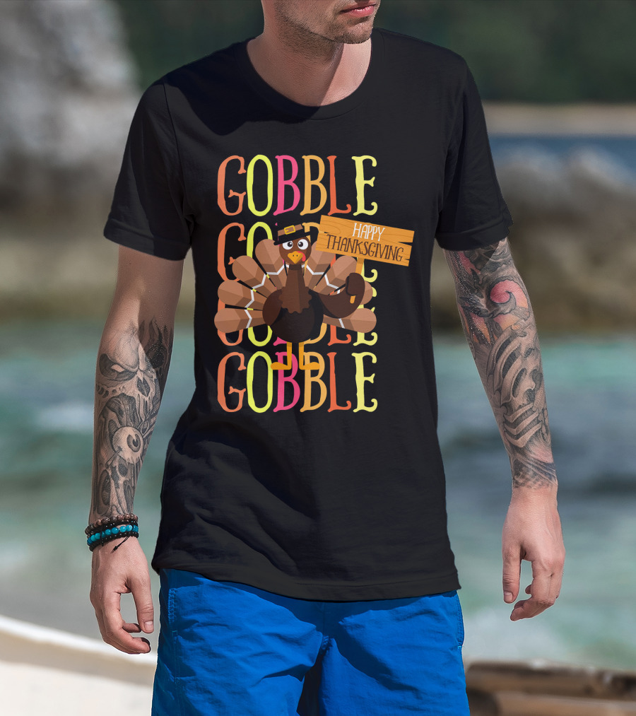 Gobble Gobble Happy Thanksgiving Turkey Pilgrim T-Shirt