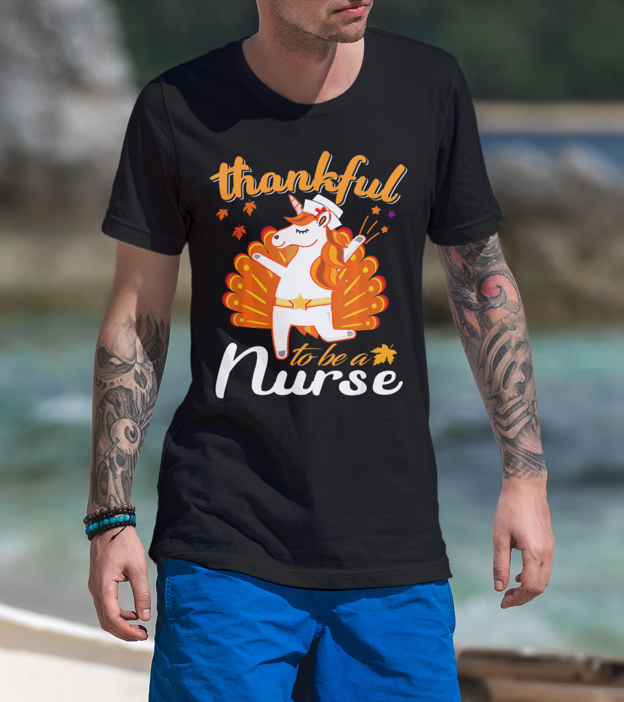 Thankful To Be A Nurse Thanksgiving Unicorn T-Shirt
