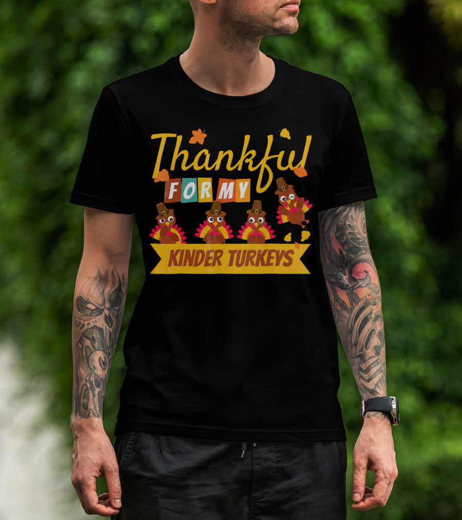 Thankful For My Kinder Turkeys Kid's Thanksgiving T-Shirt